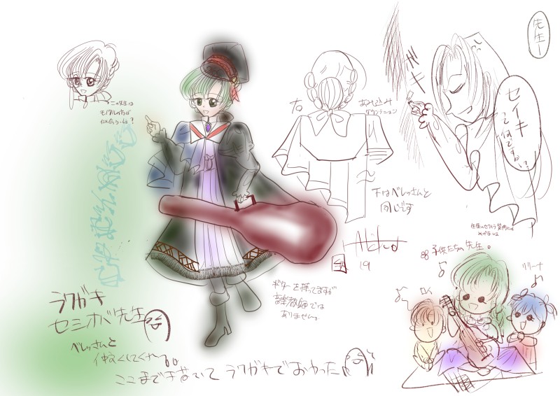 前の落書きの設定?画。モチーフはフレンちゃんの服なんだけど、ファンタジー世界の先生ってローブっぽい服を着てたよなぁと描いたものです。ポイピク用に少しキレイにしました。こういう服は「アカデミックドレス」と言うらしく、主に式典で着る物だそうです。髪型は先生があんなダラダラ髪を流さないよなぁと思って描いただけです。本当にそうすると誰だかわかんなくなるもんね(^◇^;)