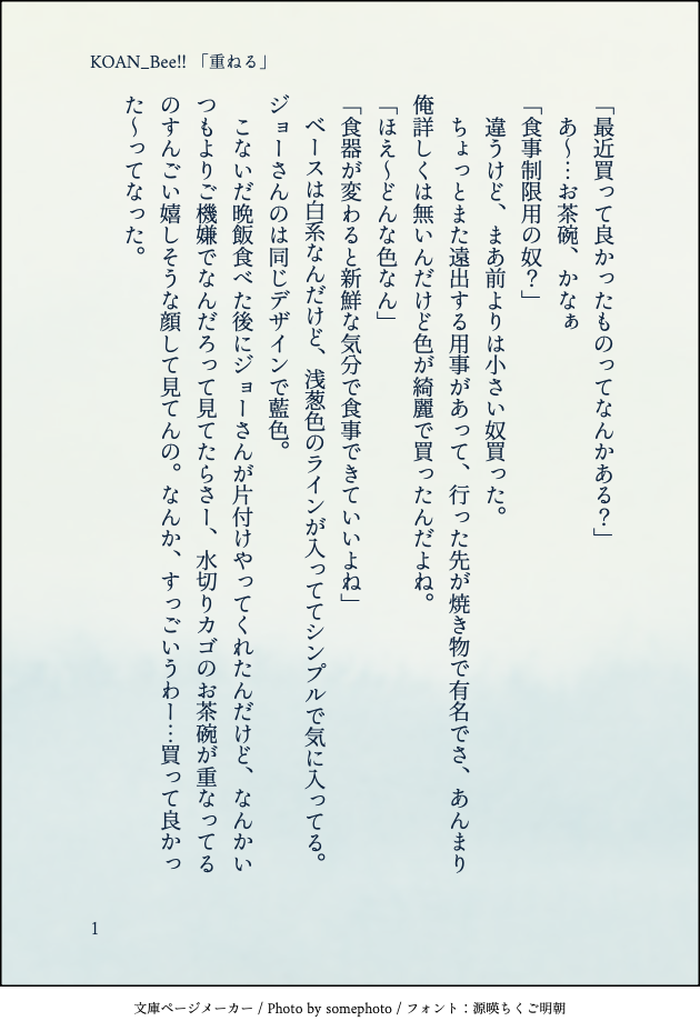 バリ元気☆quiet followDONE11/22(K×A)メイトなウェブオン2025内カップリング企画『KOAN_Bee‼︎』参加作テーマ「重ねる」 #KOAN_Bee #メイトなウェブオン2025 show all(+1 images) Tap to full screen (size:630x928).Repost is prohibited Let's send reactions! freqpopularsnackothersPayment processing Replies from the creator Follow creator you care about!☆quiet follow バリ元気DONE11/22(K×A)メイトなウェブオン2025内カップリング企画『KOAN_Bee‼︎』参加作テーマ「重ねる」 2 バリ元気SPOILER⚠️※ネタバレ含む⚠️文型村フォニアめちゃ良くてぇ……乃木さんとアキラのベテランと新人、人間と怪異のギャップがあるバディなのが良かった〜!あとやっぱ高性能美少女アンドロイドは人外に造詣が深いんだなと思った。最高〜!!! 2 バリ元気DONE火傷 (K×A)ssの再掲privattrにあげているものと内容は同じです。寒い春の日と口の中の火傷の話🔑はウェブオン1日目の日にち(4桁) 5 バリ元気DONE声の話(K×A)ssの再掲privatterにあげているのもと内容は同じです。鍵はウェブオン1日目の日にち(4桁) 5 バリ元気DONE元カレ…ス (K×A)ssの再掲privattrにあげているものと内容は同じです。🔑はウェブオン1日目の日にち(4桁) 3 バリ元気DOODLE🐺単体女装(ちょっと🦇×🐺風味)友達が描いてくれました!!!バニーガール最高!!!! 2 related works puchipuchi_wallDONEメイトなWEBオン2025のエアスケブでかんなぎさんからリクエストいただいた「苦んでる🦇を救う🐺」を書きました。WEBオンで掲載させていただいたみたらし団子SS(全2作)の完結編となっております。よかったらそちらをご覧になった上で読んでください。楽しかった。#MZMart_B 30 バリ元気DONE11/22(K×A)メイトなウェブオン2025内カップリング企画『KOAN_Bee‼︎』参加作テーマ「重ねる」 2 puchipuchi_wallDONE2025年11月22日~23日に開催されたメイトなウェブオン2025内企画「料理企画」及び「KOAN_Bee<重ねる>」への参加作品です。「いつかあの月に Ver.A」の逆サイドバージョン。できれば「いつかあの月に Ver.A」からお読みいただけるとよりお楽しみいただけるかと思います。書いててとっても楽しかったー!やった~~~!!!! 18 puchipuchi_wallDONE2025年11月22日~23日に開催されたWebオンリーイベント内の企画「料理企画」参加のSSです。料理は「みたらしだんご」お団子を食べて月見をするふたりの話。🐺さん視点。🦇さん視点もありますができればこちらを読まれたあとにお読みください。お楽しみいただけると嬉しいです。Webオン楽しかったです。開催ありがとうございました。 33 puchipuchi_wallDONEエアスケブでリクエストいただいたKA「朝チュン」書かせていただきました!豊穣たろうさんリクエストありがとうございました!これは朝チュンなのか?! メロスにはわからぬ! 10 recommended works 𓅓栗坪DONE🦇🐺大学生🦇が一目惚れした🐺を追って行ったらバニーボーイのお店だった話#MZMart_B#MZMart_R 32 san_zashiDOODLE🦇×🐺。※🔞なのでご注意ください。🐺さんの喘ぎ声のこと考えてたらこうなるし、🐺さんは全然なんの気なしに言ってる。パスワードは「18歳以上ですか?」→yes/no 𓅓栗坪DONE🦇🐺🐺の幼馴染モブ目線のBSS※🐺実家など捏造してます#MZMart_B#MZMart_R 15 𓅓栗坪DONE🦇🐺深夜のカフェでの会話#MZMart_B 6 𓅓栗坪DONE🦇🐺④治療の一環で🦇に血を与えることになった🐺の話⚠️後半に_GR要素があるのでご注意ください⚠️※年齢操作ありのパラレル_Rは予防線のおまじない#MZMart_B#MZMart_R 12 apollo07222DONE🐺🦇です。会話文。 998 あらたDOODLE遅刻したしキスの日ももはや関係ない🦇×🐺何コレ…… mary1201kmgnDOODLE 🌊🐚🌊MOURNING🦇🐺付き合ってます。なんか🐺さんをメンヘラみたいにしてしまったけれども、こういうお願いしてきたらいいなって思いです。 4562