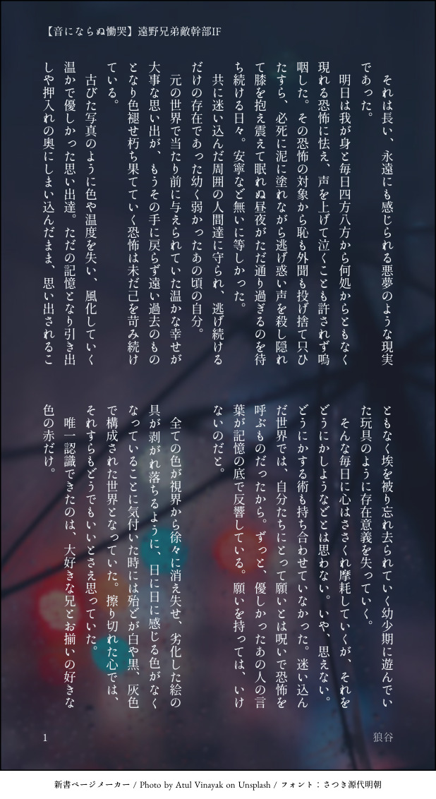 O_kami01tani☆quiet followSPUR ME取り敢えず冒頭だけ…。こりもせずネタを擦り続ける。❌⭕️兄弟敵幹部IF再会編何でも許せる方向け。捏造妄想幻覚過多。 show all(+7 images) Tap to full screen (size:618x1132).Repost is prohibited Let's send reactions! freqpopularsnackothersPayment processing Replies from the creator Follow creator you care about!☆quiet follow O_kami01taniDOODLE⭕️🐺闇堕ちIF捏造妄想幻覚、己の癖を詰め込みまくったので海よりも広い心で何でも許せる方のみご覧ください。相互様の素敵ネタで激ってしまった結果ですん…。相互様には公開する許可をいただいております。闇落ちって…美味しいよねぇ…。特にヒーロー性の高い、あまりにも光過ぎる子が堕ちる様は一生味する。久💡お兄ちゃんの情緒ぐちゃぐちゃにしてくださいよ、⭕️🐺君。 O_kami01taniSPUR ME取り敢えず冒頭だけ…。こりもせずネタを擦り続ける。❌⭕️兄弟敵幹部IF再会編何でも許せる方向け。捏造妄想幻覚過多。 8 O_kami01taniDONE❌⭕️兄弟幹部IF。捏造、妄想幻覚過多。なんでも許せる方向け。雰囲気で読んでください( ◜ω◝ ) 5 O_kami01taniDONE遠里予ロ犬の独白。⭕️🐺君のとある日の夢と目覚めの話。個人の中で思考をぐるぐるさせてこねくり回すのが好きなので、ええ。独白多くねぇかと思ったそこの貴方、正解。わしの癖であり文章書く時のくせです。捏造幻覚過多なのでなんでも許せる方向けです。 5 O_kami01taniDONE50ジャー、平和その後IF話。❌⭕️兄弟、0️⃣🦁昔馴染み、🦄糸者姉妹中心妄想捏造幻覚過多。なんでも許せる方向けです。みんな仲良くしてくれぇ……_(:3 」∠)_誰かわしに🦄ぽよ妹君の絵文字教えてくれ…。 7337 O_kami01taniDOODLE50ジャー、❌⭕️兄弟、❌🔫の落書きその他描き殴りの産物 6