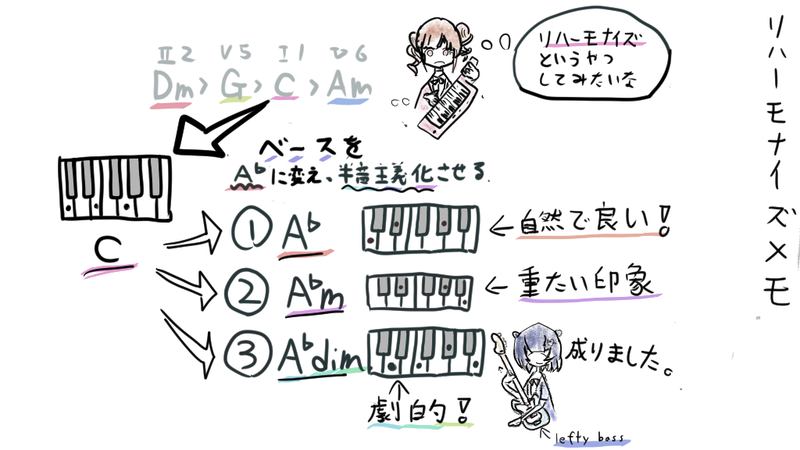 リハーモナイズ(メロディーに合わせるコードを変える事)について実践のメモです。