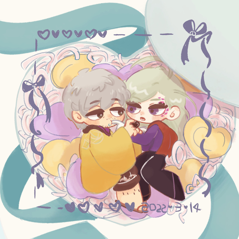 周りがスカスカでバランス悪かったやつのトリミング前のホワイトデーのモチとフォロワがお誕生日だったから描いたククマレ(トリミングの姿)です🎂