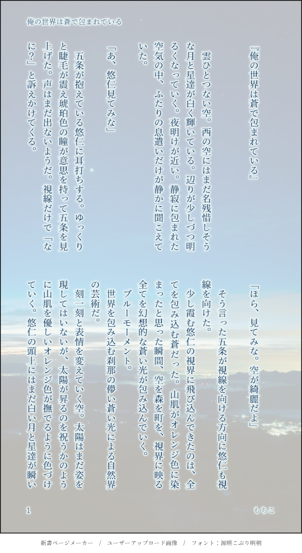 xmochimochixx☆quiet followMOURNING空オレとワンドロの共同企画の際に展示した話【俺の世界は蒼で包まれている】ブルーモーメントに包まれるふたり。 show all(+4 images) Tap to full screen (size:618x1132).Repost is prohibited Let's send reactions! freqpopularsnackothersPayment processing Replies from the creator Follow creator you care about!☆quiet follow xmochimochixxMOURNING空オレとワンドロの共同企画の際に展示した話【俺の世界は蒼で包まれている】ブルーモーメントに包まれるふたり。 5 xmochimochixxMOURNINGワンドロ【嫉妬】自分のしらない人間と会ってるゆじを目撃した五が嫉妬しちゃうけど……なお話 6 xmochimochixxMOURNINGワンドロ【別れ道】ちょっとアングラなお仕事をしてるごゆのお話。コーヒーの前編になるよ。 8 xmochimochixxMOURNINGワンドロ【声】五条が最後に聞いた声とは…… 5 xmochimochixxMOURNINGワンドロ【ラブレター】ゆじが書いた手紙(ラブレター)とは。 7 xmochimochixxMOURNINGワンドロ【コーヒー】ちょっとアングラなお仕事をしているごゆと、とーじパパのお話。ワンドロ【別れ道】の続編的なもの。 7
