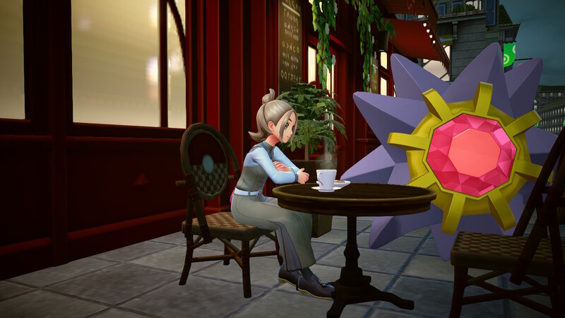 ネタではあったのですが、スターミーでミアレ攻略…は出来なかったので、せめて思い出残しでスターミーとツーショットを撮りたい!と思い至ったので二枚撮りました!まず一枚目は通常の姿のオヤブンスターミー!性格がおとなしいだったので、カフェひとみしりでひとみしりブレンドを注文して撮影しました!二枚目はメガスターミー!メガシンカのトレーナーのポーズと共に一枚!📸