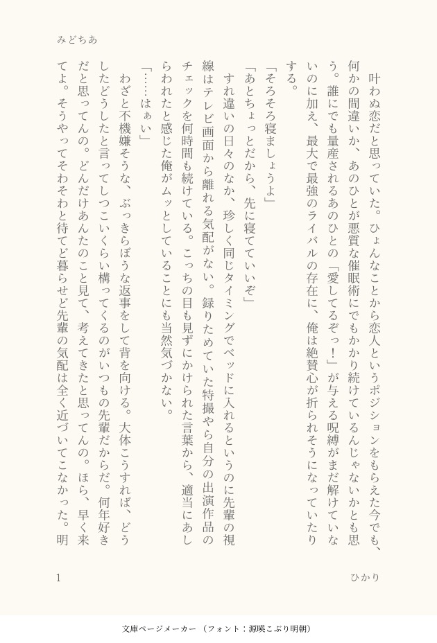 ひかり☆quiet followREHABILI同棲みどちあ show all(+4 images) Tap to full screen (size:630x928).Repost is prohibited Let's send reactions! freqpopularsnackothersPayment processing Replies from the creator Follow creator you care about!☆quiet follow ひかりPROGRESS初夜みどちあ、高峯がヘタレで情けないほどいとおしくてかわいくて大好きなので何度でも書きたい。(過去作の続きだよ) ひかりPROGRESSこの前麻婆豆腐だったから、今度はお鍋の話。 ひかりTRAINING診断メーカーのお題で書きました 6 ひかりMOURNING2年前の翠千ワンライお題「早起き」の書きかけボツネタの完成版。3ページ以降が今回の書き足し分。 6 ひかりPROGRESS高峯誕にあげるか迷ってるやつ思ったより長くなりそう、現時点で4000字くらいいってる ひかりDOODLE未成年の高峯にお酒買ってこさせる守沢の話※この後の展開は左右どっちでもご想像におまかせします 5