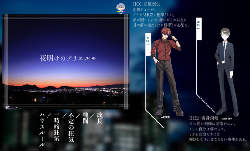 situ021☆quiet followINFOCoC6th「夜明けのグリエルモ」KP: 真夏さんHO1記憶喪失: はじめ/ 三十間 燕治HO2満身創痍: 白長須さん/ 狗留宮 鳥海エンドA・両生還にて終幕してました!私は2周目 ドロマイ継続刑事シうれし~~!えっちなシナリオではないんですが随所えっちなのも嬉しかった 感謝… ##TRPG ##報告 Tap to full screen (size:850x514).Repost is prohibited Let's send reactions! freqpopularsnackothersPayment processing Replies from the creator Follow creator you care about!☆quiet follow situ021INFOCoC6th「夜明けのグリエルモ」KP: 真夏さんHO1記憶喪失: はじめ/ 三十間 燕治HO2満身創痍: 白長須さん/ 狗留宮 鳥海エンドA・両生還にて終幕してました!私は2周目 ドロマイ継続刑事シうれし~~!えっちなシナリオではないんですが随所えっちなのも嬉しかった 感謝… situ021INFOCoC6th「SHOTGUN KIXXING MARRIAGE」KP: バハムート山口さんPL/PC:熊野/ 真夏さん犇合/ はじめエンドC「LOVE IS KILLING EVERYTHING.」にて終幕!!こち獄継続ショキマリ、いい結婚式だった……この人たちってずっと"暴"なんだよな(だがそれがいい)スズシロまつむーペアも結婚してね~!!! situ021INFO新CoC「埋葬代行」KP: はじめPL/PC:紅野 莉杏 /朱音さん八十島 周正/ 真夏さん宇佐美 昌/ 風巻さん児玉 昌平/ 栗城さん - 全員生還にて - _,,..,,,,_ / ,' 3 `ヽーっ. l ⊃ ⌒_つ `'ー---‐'''''" 2 situ021INFOCoC「ラプラスの探求者達」KP/冥: 三城水: Viator・Mercurius/歩兵金: エリオ・ヴェニュス/まあむ地: 綺羅 くいん/白旗火: Varisha・Mars・Ignisendra/征羅木: Sullivan・H・S・Jupiter/まさゆき土: Wilfried Saturn/はじめ天: 自称:ペンギン/かららら海: Finn・Neptun・Hegel/鱈_ situ021INFOCoC6th「レプリカントの葬列」KP: おじさんHO1: 番原 紅 - 怪盗クロード /んじさんHO2: 編利田 /はじめレプ葬モンスタースカーレット/バイオレット、エンドA両生還にて終幕~~!怪盗ってやっぱカッコいい生き物なんですよ「やはり君にはこの色が似合うな」 2 situ021DOODLE【cocシナリオ: WILL】コツコツ描いてた公開NPCのFAまとめました。全員います。順不同 ネタバレ無し。 6