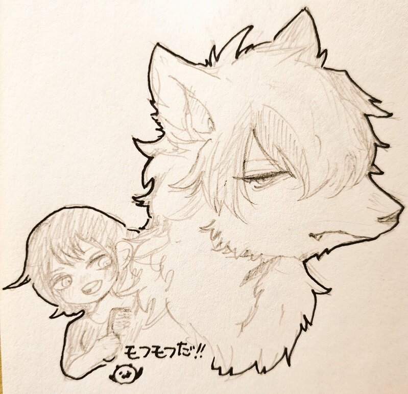 フレキの遠吠えの狼男越知月光(かなり狼寄りバージョン)を熊猫さん(@pandanonisime)が描いてくれました最高~!