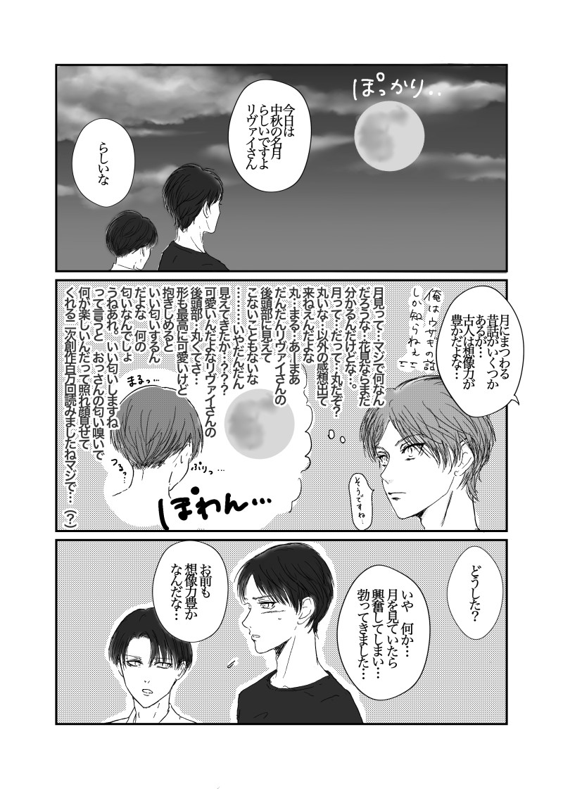 あすみ☆quiet followDONEワンドロのお題【満月】をお借りして、付き合ってるエレリがお月見をする話を描きました。 #エレリ ereri Tap to full screen (size:2122x2976).Repost is prohibited Let's send reactions! freqpopularsnackothersPayment processing Replies from the creator Follow creator you care about!☆quiet follow あすみDONE龍スタにハマってしまった………… 3 あすみDONEホワイトデーのエレリpixivにも同じのあげてます 6 あすみDOODLEリヴァイさんが恋の相談するならエルドさんかグンタさんだと思ってるんだよね。グンタさんが1番いいこと言ってくれそう。エルドさんはちょっとモテ男目線の意見やアドバイスだからリヴァイさんの参考にはならなそう あすみDOODLEリヴァイさんは傷付きました 2 あすみDOODLE飛影とプーちゃん。ポーズ参考あり あすみDONE幽飛です。幽遊白書久しぶりに読み返したら何か唐突にこの2人に転がってしまいました。原作の2人について沢山言いたいことはあるんだけどもまずは魔界の扉編のこのシーンについて萌えが溢れ出て止まらないので二次創作しました related works HiroTRAINING書き方の練習。苦手。プロポーズは何回もみたい 3 HiroPROGRESSキスしてる二人は世界一可愛い。頑張った✨ HiroDONE朝ちゅんをお題に書いたよ🙌🙌 4 secPROGRESSバレンタイン描く気力体力残らなかったので原稿進捗 4 HiroPROGRESS綺麗に描けた✨ ume_suisyouPAST2022.12最ダリ無配 8 花柳薫DONE顔の線が意図せず潰れちゃって😭😭😭なのでTwitterに載せたブリキンの差分 えと(ovo)DOODLE女装してエレンと付き合ってる設定 HiroDONEサークルカットなぅ。 recommended works HiroPROGRESS仲良し💕 2 生成子MAIKING7話のせいで未来捏造したラン暦。プロボーダーランガ×メカニック暦モブ女視点ですがただの当て馬なのでご安心ください。元ネタ:Rihanna「Don't Stop The Music」 3717 ナヅナDOODLE #ラン暦 kiyasalingDOODLEラン暦のセーター(G) omiotuke_MioTRAINING現パロエレリ。リハビリです・・・何もないから・・・恥ずかちいのでワンクッション。 tanshoku_DONEThe Merman & His Prince meno_poDONE前回の補足描いた。エレンの雄っぱい、リヴァイさんのお尻を揉みたい……これは原始的欲求?ポイピクでリアクション貰えるの新鮮で嬉しいです。OPPAIコールや出動する警官やパトカーめちゃ笑った。( ゚∀゚)o彡゜おっぱい!おっぱい!拍手にハート等々たくさんの絵文字すごく元気出た~ありがとうございます!感謝 chuuuuuux6PAST 5 _bnzn_PASTPASS=18歳以上ですか?(yes/no)潮騒の呼び声(エレリ)海を渡る前、二人で過ごす残り少ない時間の中での触れ合い――離別の予兆を感じつつスキンシップ多めの日常を過ごすエレリです。100話を読んだ段階でネームを描きました。 28