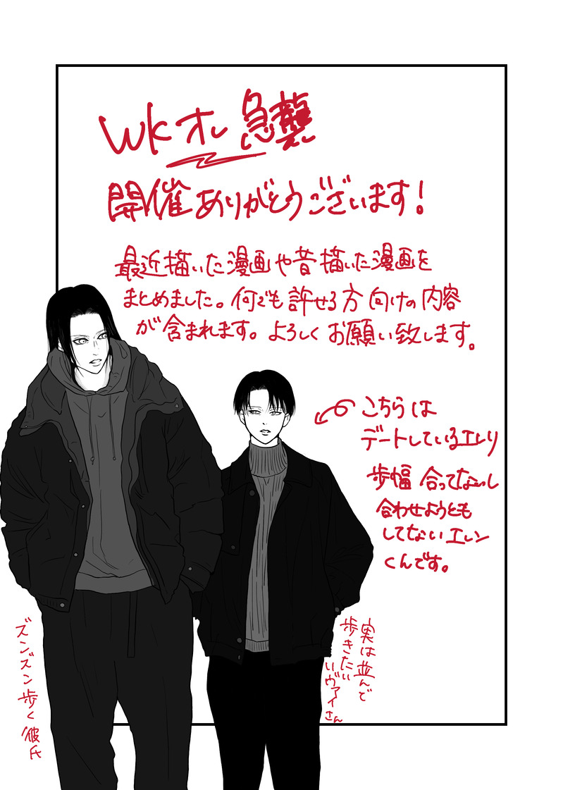 あすみ☆quiet followDONEwkオレ急襲開催おめでとうございます!何でも許せる方向けです。 show all(+14 images) Tap to full screen (size:2122x2976).Repost is prohibited Let's send reactions! freqpopularsnackothersPayment processing Replies from the creator Follow creator you care about!☆quiet follow あすみDONE龍スタにハマってしまった………… 3 あすみDONEホワイトデーのエレリpixivにも同じのあげてます 6 あすみDOODLEリヴァイさんが恋の相談するならエルドさんかグンタさんだと思ってるんだよね。グンタさんが1番いいこと言ってくれそう。エルドさんはちょっとモテ男目線の意見やアドバイスだからリヴァイさんの参考にはならなそう あすみDOODLEリヴァイさんは傷付きました 2 あすみDOODLE飛影とプーちゃん。ポーズ参考あり あすみDONE幽飛です。幽遊白書久しぶりに読み返したら何か唐突にこの2人に転がってしまいました。原作の2人について沢山言いたいことはあるんだけどもまずは魔界の扉編のこのシーンについて萌えが溢れ出て止まらないので二次創作しました