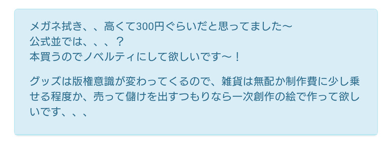 頒布価格に関して各サークルさんの判断かと思いますので匿名箱で言う事ではないと思います。コメ主様が300円か無配だと思うならご自身はそうすればいいのでは? 今回は早割がついたので100円単位で調整はしようかと思っていましたが大して儲けは出ません。そもそも金額はお願いしている印刷所・個数・納期によって大きく変わりますので一概に言えないと思います。無配としてつける予定もないので本も買わなくて結構です。