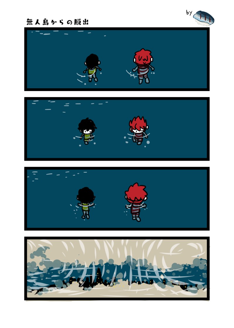 先々週の13枚目(つまり最後に描いてたラフ)。あの晩時間内に4コマ目の背景書き終わらなかったのでそこにいまちょっと手を入れただけでそれ以外はもとのままのアレ!(何描いてあるのかサッパリわからん!と突っ込まれそうなので先に説明するとnotパラレルせかいはなんでもおこった結果hlに戻るべく無人島を脱出することにしたクラ&ステ。しかし沖に出て島を振り返ってみればそこにあったのはhlだった…的な!など文字