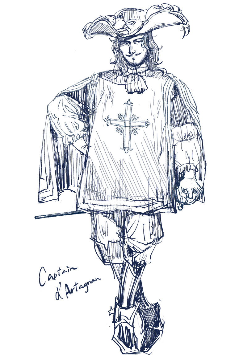 久しぶりに絵を描いた。昔の本の挿絵とか写真を参考にしています 銃士隊の制服のタバード?ってカッコいいけど動きにくそうだなって思う カッコいいけど