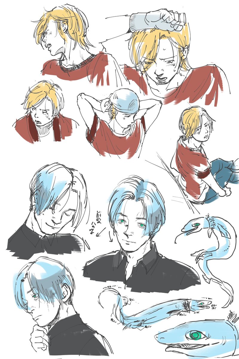 2023.7.16-20 サーペント君練り練りのもようを追加。ここ最近、絵柄における「一般受け」の重要さをとみに感じる。作品を多くの人に気に入って貰ってその世界に没頭して貰うには、見る側が引っかかりを覚えるような無駄な個性はいらないのかもしれない。寧ろ、なるべく多くの人の好みに沿う必要があるよね。だから特に商業作品は、内容で勝負するために、あえて無難で綺麗な絵柄にすることが多いんだろうな。
