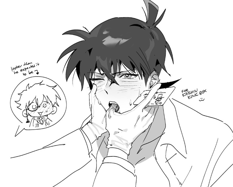 FINGERS IN SHINICHI'S MOUTH NOWWW!!!!!!!! the prompt is really fun ehehe. i looove drooly shinichi... in the scenario i had in my head, this moment awakens something in kaito :3c