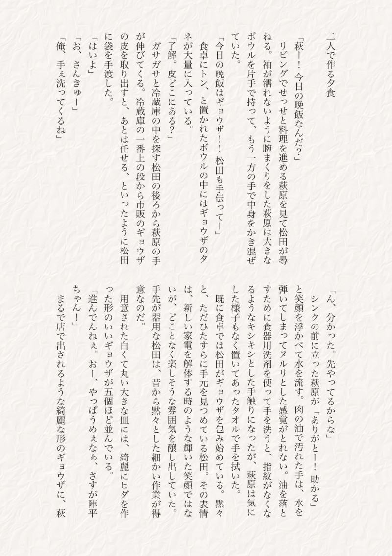萩くんと松くんがギョウザを作るだけの話。