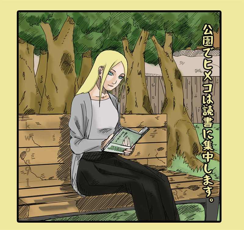 公園でヒメコは読書に集中します。