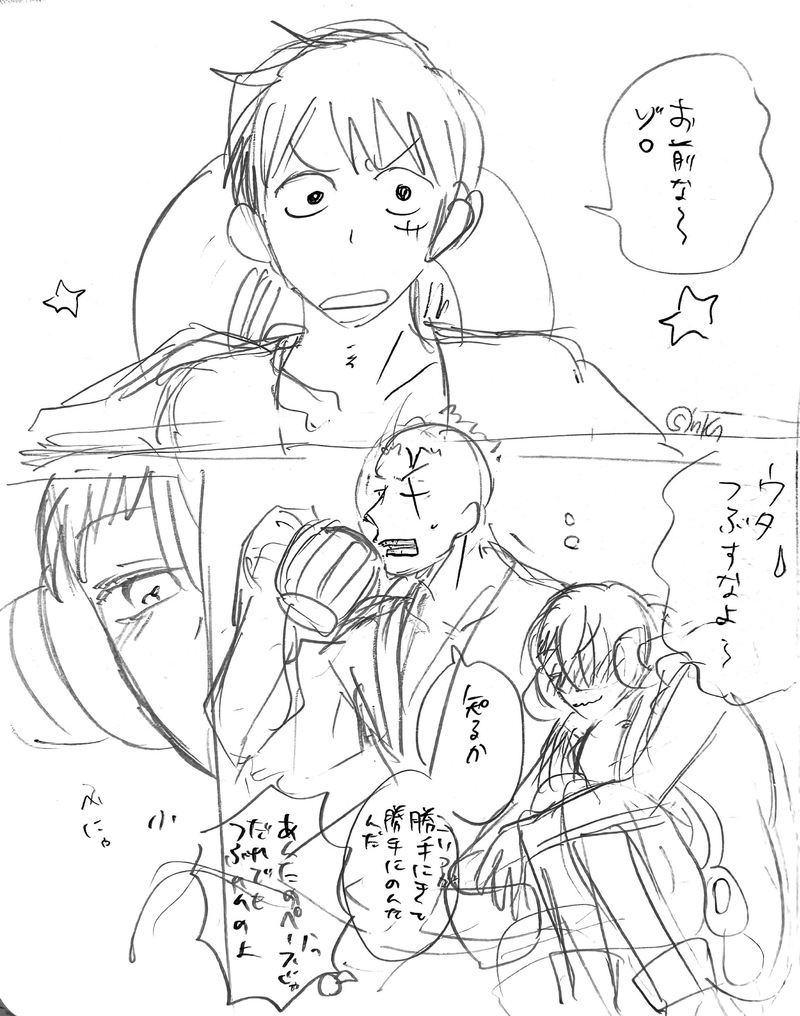 ルウタの同人誌の元のネームでは⚔の肩で🎶が寝てる図だったよというアレ