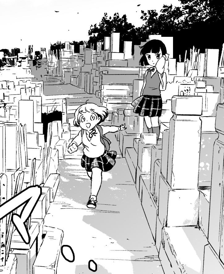 キャラが小さく描かれたコマが超かわいいので貼っておきますね。他にも背景メインコマにちまっと描かれた二人があるので是非タップして大きくしてご確認下さい