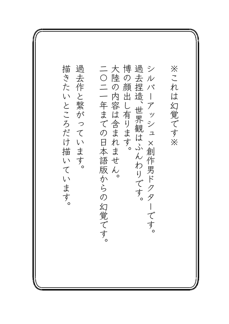 sasaya38231☆quiet followDONEノアの休日2開催おめでとうございます。銀博♂創作男博顔出し、過去捏造有。2021年までの情報で描いています。ヴィクトリアの幻覚が含まれます。少しでもお楽しみいただけましたら幸いです。 show all(+49 images) Tap to full screen (size:850x1200).Repost is prohibited Let's send reactions! freqpopularsnackothersPayment processing Replies from the creator Follow creator you care about!☆quiet follow sasaya38231DOODLE sasaya38231MOURNING銀博♂創作男博顔有#えっちな銀博収穫祭2022事後なのでR18です sasaya38231DONE銀博♂になる予定の風雪一過後の小話です。捏造幻覚ご注意ください。少しだけ博の顔有ります。 9 sasaya38231MOURNING銀博♂ 創作博顔出し有ります。ヴィクトリアの幻覚です。描けなかった話から小話。無自覚に被り等ありましたら申し訳ございません。カプセはチベットのお菓子。美味しそう、そして可愛い!一度食べてみたいです。1コマ目の小物はヤクとか羊に類する動物の毛でできたぬいぐるみ。お土産物として人気。やたらと雪豹モチーフが作られている事からイェラグでの人気が伺えます。 3 sasaya38231MOURNING銀博♂ ヴィクトリアの幻覚含む小話pass テンジンの攻撃力(対空)は銀灰の攻撃力の??%※R18、創作博の顔出し有ります。描きたいところだけ描いてます。ただいちゃいちゃして欲しかった。現在の博は煙草は吸ってないし欲求を感じる間もなく忙殺されています。銀灰はヴィク時代に博から子ども扱いされた事を根に持っています。イェの成人年齢はヴィクではまだ子どもだったら良いなと。 16 sasaya38231DOODLE銀博♂ 創作博顔有りクリムトの接吻からの幻覚です。使用ブラシ あんまり癖のないちょっと癖のあるペン recommended works 雪(ゆき)DONE キツキトウDONE2021/7/17書きもの/「Wisteria」書き溜まっていたものを、ポイピクに縦書き小説機能が追加されたので置いていきます。ポイピクの仕様上、「濁点表現」が読みづらいかもしれません。そしてもし誤字脱字がありましたら生暖かい目で見守っていただけると幸いです……。※創作BL・異類婚姻譚・人外×人・R-18・異種姦・何でも許せる人向け。 6995 oyadoriDONE再掲の銀博♂SSです共犯者〜(ほのぼの)夜食銀博♂🥰 4 らすBL。PAST吸血鬼×人間ご主人が大好き過ぎる吸血鬼 2 momoju1124DOODLEサロメを演じる🌻さん高身長アイドルタカダちゃんの代役女装している 狭山くんTRAINING2022-07-29/夏の空閑汐♂祭りもあと3日になりました!わぁん!揃えるというかお揃いというか揃えたという感じ。 1079 muki_rururuPAST2019/pixivサルベージ伊丹小夜さん(@itamiff)に影響を受けたのと、過去描いた線画を塗ったりしてる朗報:年齢操作、ゲームパロとか注意:一部成人×未成年の性描写(多分このモブくんは高校生とか) 40 アルチェDONE[全体公開] rC5JeZOPovKjt3TDOODLEとうひゅ〜〜〜〜〜!ちょっと如何わしい普通に(?)ヤってるのも増やしたのでr18にしました 4