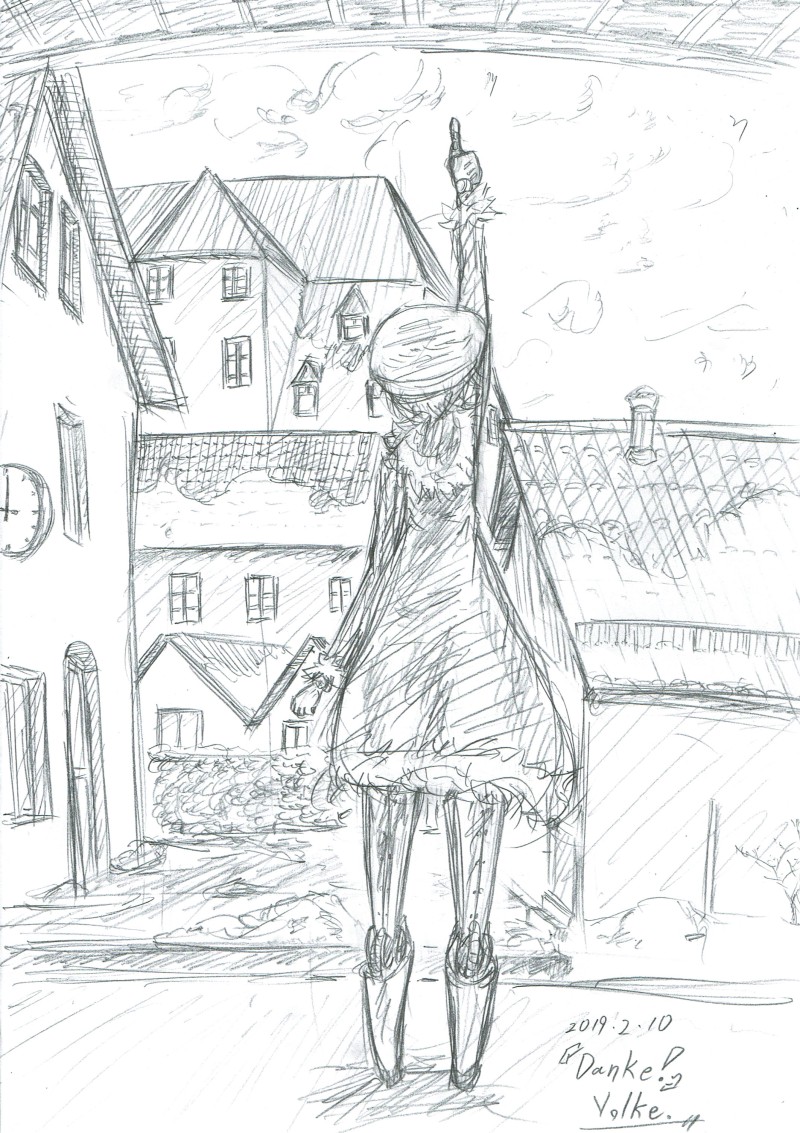 うちの子『ヘルミーネ・トレーガー』ちゃん(後ろ姿)のアナログ絵です♪