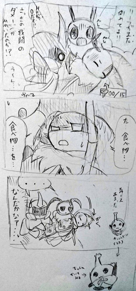 空腹のあまり倒れたリーフさん落書き