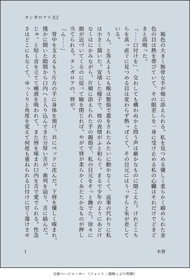 k1s0_kokuti☆quiet followMOURNINGタンガロア×主2 キスの話 一番最初にツイッターに載せてたのに上げてなかったんですね #放サモ #SS名刺メーカー ssBusinessCardMaker #主2 #タンガロア tangaroa show all(+3 images) Tap to full screen (size:630x928).Repost is prohibited Let's send reactions! freqpopularsnackothersPayment processing Replies from the creator Follow creator you care about!☆quiet follow k1s0_kokutiDONEこの前書いた話の主視点 4 k1s0_kokutiREHABILIガロ主2(+父祖) リハビリに手癖で寝起きの話です(何度でも書く) 幸せだったね 4 k1s0_kokutiDOODLE威圧する主ちゃんも見たかった 3枚目サイズガピガピですすみません 3 k1s0_kokutiDONE寝ぼけてπを揉むけど許されてそのまま揉んで朝から湧いた煩悩に悩みつついちゃついている主とガロぱぱ。 1976 k1s0_kokutiDONEしてるだけでやまもおちもないえっちなやつ ♡乱舞させてる尻切れとんぼで終わりますが、まぁ、あとはご想像にお任せしますということで…… 6845 k1s0_kokutiDONE大遅刻バレンタイン 押し倒されてこのあとめちゃくちゃ以下略 1913 related works イシノシタダンゴムシDOODLEイシュ主2主2攻めのターンたまにはキャンキャン言わされたらいいと思う※雰囲気エロ ひりゅー。DOODLE我が家の主5くんガルムくんにデレデレぽっこりお腹愛でたい… 3 ひりゅー。DOODLE我が家の主5くんガルムくんにデレデレぽっこりお腹愛でたい… 3 @la_nuit36DONE #放サモ 2 ひりゅー。DOODLEガルム特製ご主人様用特別おにぎり🍙 2 かさはらCAN’T MAKE祈願も兼ねてざっくり落書き 流石に粗すぎて笑うおじさん初めて描きました めちゃくちゃ難しかった…照れ顔スキン最高すぎでは…?尊すぎて泣いた…😭 そりゃソーダPAST放サモまとめ支部に出すほど貯まってないし、ここで供養しとうございます 13 けものすけDOODLEもうすぐクリスマス。皆に幸あれ!良くなってはきたけど腱鞘炎のせいで厚塗りとか描き込みするの難しいのでエアブラシ塗りです。 はなこDOODLE最推し達の前髪を下ろしてみたかった… recommended works ほまれPAST落書き➡自動着色4連発 5 hagiDOODLEだいす KARRION_CROWDOODLE駄菓子大好き小鴉ちゃん hagiDOODLEだいす だしまきDOODLEらくがき hagiDOODLEあぬめのだいすを心配しながら明日を生きる… ありす(元うさ実、マネキネコ)DOODLE新しくDLした筆を試したくて描いた腐向け落書き♡ 2 LunaDOODLE残暑見舞いとか落書きとか 3 あしきょーMEMOはい。自分の性癖大全開で描いてたら大暴走しました。楽しかったです。(日記) 5