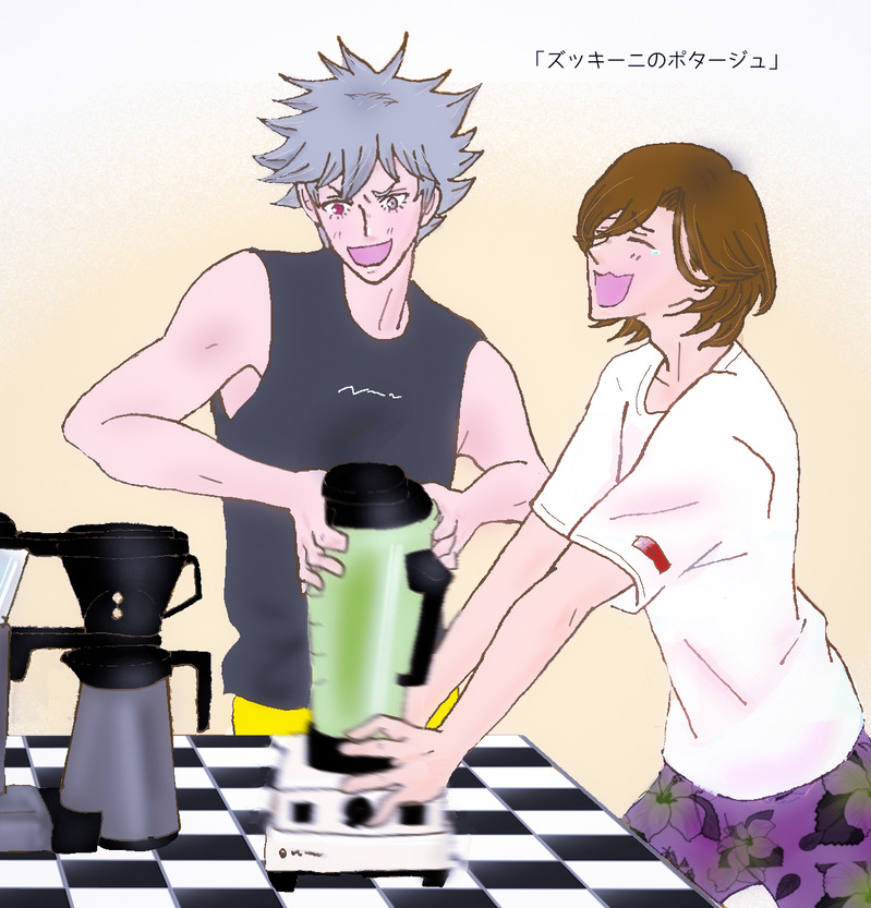 というわけで、ふたりが心底楽しそうにご飯を作るシーンを描きました。