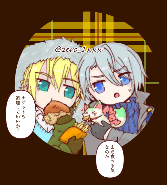 アイコンのくにちょぎ+まめ。また写しがおやつ分け与えてる(ちょぎくんは諦めて量のセーブだけしている)。