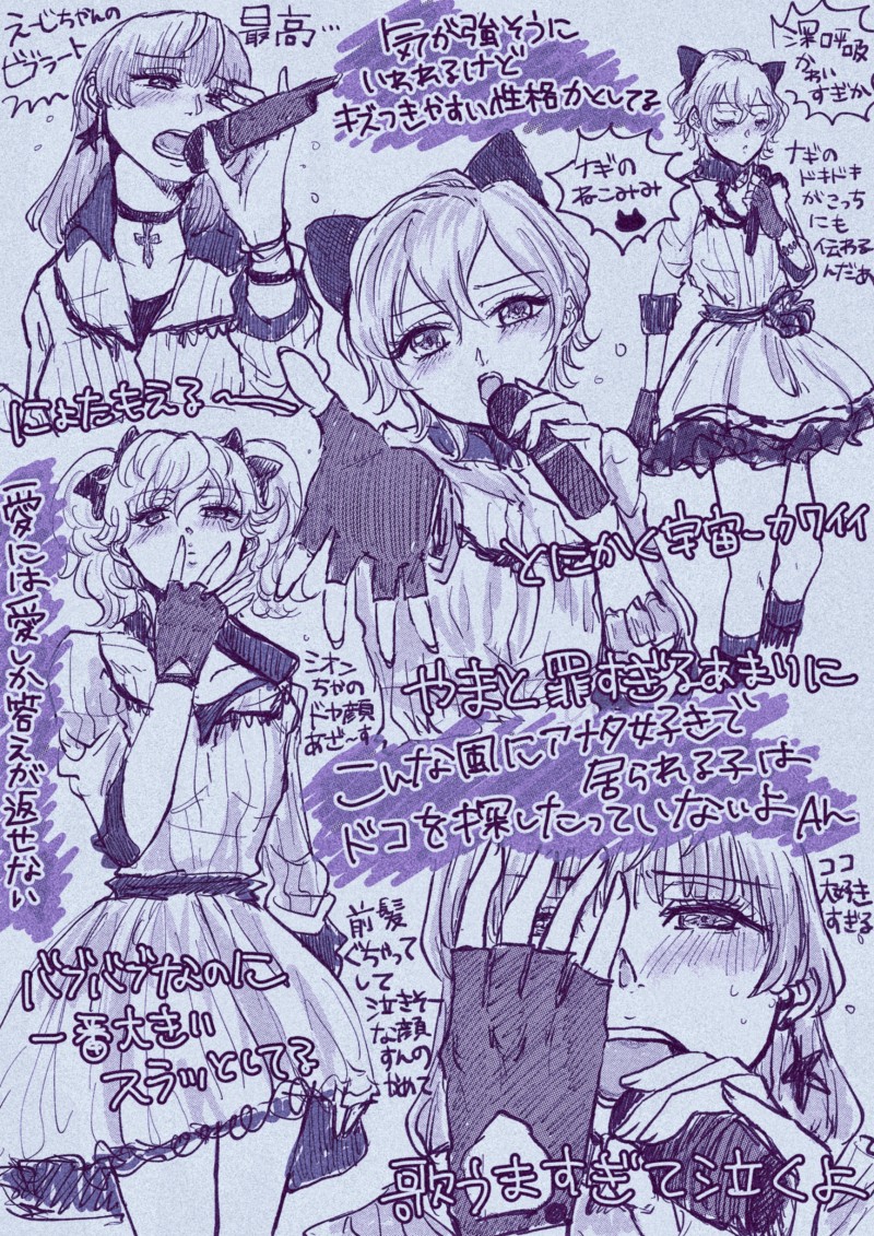 【hlpr '11秋卒コンにょた♀ぱろ】「Give me 愛」の愛様があまりにも瑛二すぎて興奮してしまった。"こんな風にアナタ好きで居られる子はどこを探したって居ないよ"ってすごい瑛二じゃない?控えめに見えてめっちゃ我の強さ出てる好き。あとどーしてもれーなの猫耳をナギに付けたかったのと、シオンちゃんにちゃゆみを感じてしまってやばい。みんな大和のこと好きなんだよな……可哀想に…つらい(悦)