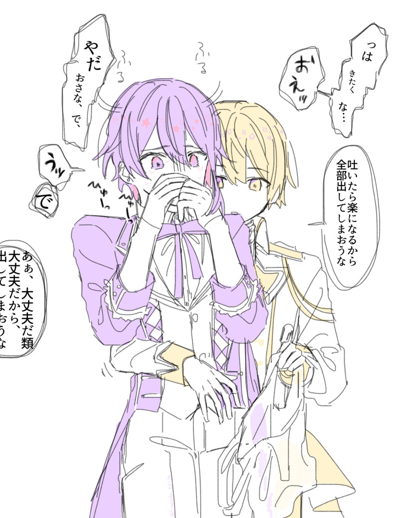本当は吐くの日に投稿したかったのですがダメでした…☺️💦。注意、🎈と🌟と🎀に吐かせたかったので吐かせています。