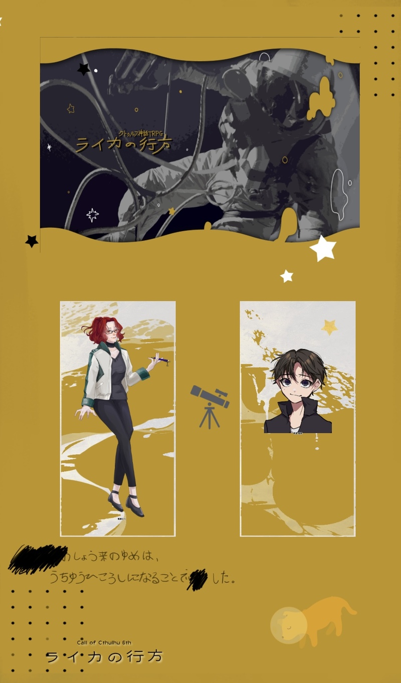 MaapRi_☆quiet followINFOCoC『ライカの行方』KP/KPC:とらすさん/竜崎 エリPL/PC:まぷり/明渡 煌夜両生還にて終了 Tap to full screen (size:963x1640).Repost is prohibited Let's send reactions! freqpopularsnackothersPayment processing Replies from the creator Follow creator you care about!☆quiet follow MaapRi_INFOCoC『よなよな宇宙を見に行こう』KP/KPC:はくたさん/Caroline WrenwoodPL/PC:まぷり/Diana Collins両生還にてシナリオ終了 MaapRi_INFOCoC『代理殺人は覚めないうちに』KP/KPC:吉田/ダイアPL/PC:あいさん/テイリ肩肉さん/アランまぷり/ハル全生還にて終了 MaapRi_INFOCoC『ニトロとレモン』KP:4restさんPL/PC:HOニトロ まぷり/梢HOレモン るりさん/八瀬 梢エンドR 両ロストにて終了 MaapRi_INFOCoC『Hello! Spooky World!!』KP:ことことさんPL/PC:HO1 東のエリアマスター 肩肉/Melty CreamHO2 西のエリアマスター まぷり/DirghamHO3 南のエリアマスター 吉田/Orcael OrcadisHO4 北のエリアマスター ていじ/Gr Rr全生還にてシナリオ終了 MaapRi_INFOCoC 『K県警K課』最終話『???』KP:ことことさんPL/PC:HO法螺吹き まぷり/肥吾 流弦HO好色 ていじ/女辺杉 隆HO守銭奴 ことこと/南ヶ丘 巳値HO無能 吉田/純美間 泉END-A 全生還にて終了 MaapRi_INFOCoC『Mr.アンラッキー&Ms.グッドラック』KP:ぽんぺさんPL/PC:HO1 ぴよひこ/Jack randonneurHO2 まぷり/Carla Ellington両生還にて終了 recommended works 碌ノ瀬PROGRESS.嵐の前の静けさのようなものを描きたくて…娘として大事にしながらも「一戦士」として尊重してるのが本当に大旦那に感服した所かもしれない。利刃襲撃時も(勝機が出る所まで調整してるとはいえ)場を任せてタルラの援軍に回るし、死を知った時には「本来なら稲穂を刈り取るように(ロドス陣営を)簡単に殺せたはず」というあたり印象に残っていてな…戦士としてもしっかり買ってたんだな…と思い印象に残っている…でも調整はするし護符も持たせちゃうんだよな…本当に情と公正の間でせめぎ合う人だよ…ああ〜並び立って来るのを相対する立場からでいいから1度見せてくれ…と言っています、戯言 sktDQ11DONEゆるよろクリパ開催おめでとうございます🥳🎄以下注意事項になります🙏・ギャグ寄りですが主カミュがメイド服を着ています。元気いっぱいです。・昔描いていた漫画の続きになるので当時の漫画から続けて以下の順でそのまま載せます。かなり絵が古くお見苦しいかと思いますが頑張って読んで下さい😭2018年ワンドロ「女装」4P2019年ワンドロ100回記念お題フリー2P2024年(新作)11P 17 ザザリSPOILER◇CoC 嗤う人間師◆KP つる坊◇PC/PL PC1:James・Maynard/kiri PC2:Lonnie Noakes/ザザリ PC3:Ethel・Halloween/唯々砂 PC4:Thaddeus・R・Wharton/えび(敬称略)◆3生還1ロスト2024.12.23-12.25 2 TARMSPOILER沼男は誰だ 現行・未通過❌同卓⭕️⚠️ネタバレ絵⚠️ シナリオNPCHO1、こういう男でした。 山田ΩDOODLE仲良くないころのぐれぶき 2 あきざくらDOODLE晩餐花に連れてった迅の立ち絵+差分まとめシナリオバレはありません 10 トコノマPROGRESS本文 10/28/アークナイツ出勤前に漫画ラフ終われた~~~10ページもある…… nyhMOURNING shuuuuuuDONE🎁⭐️🎄⭐️🎁 9