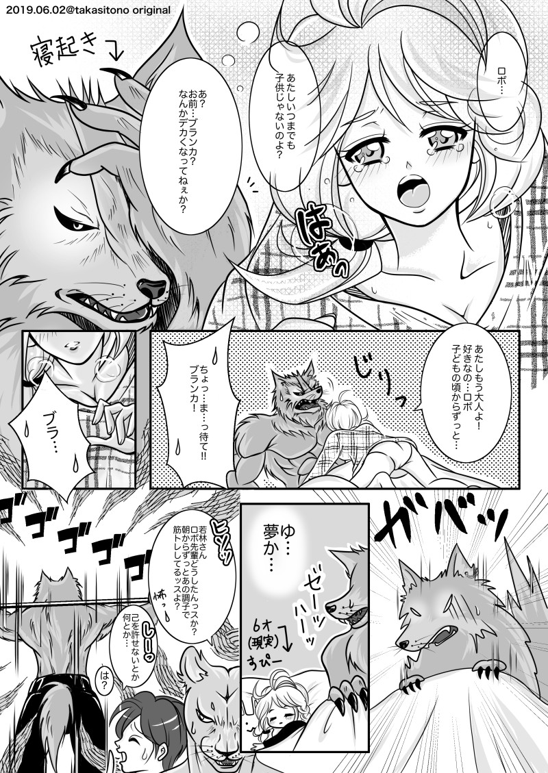 ■以前描いたミリタリーオオカミのイラストのキャラクターが主役のオリジナル漫画。軍人オオカミ・ロボと、ロボに助けられて同居する事になる、人間の女の子・ブランカ✨人外×少女のお話です!