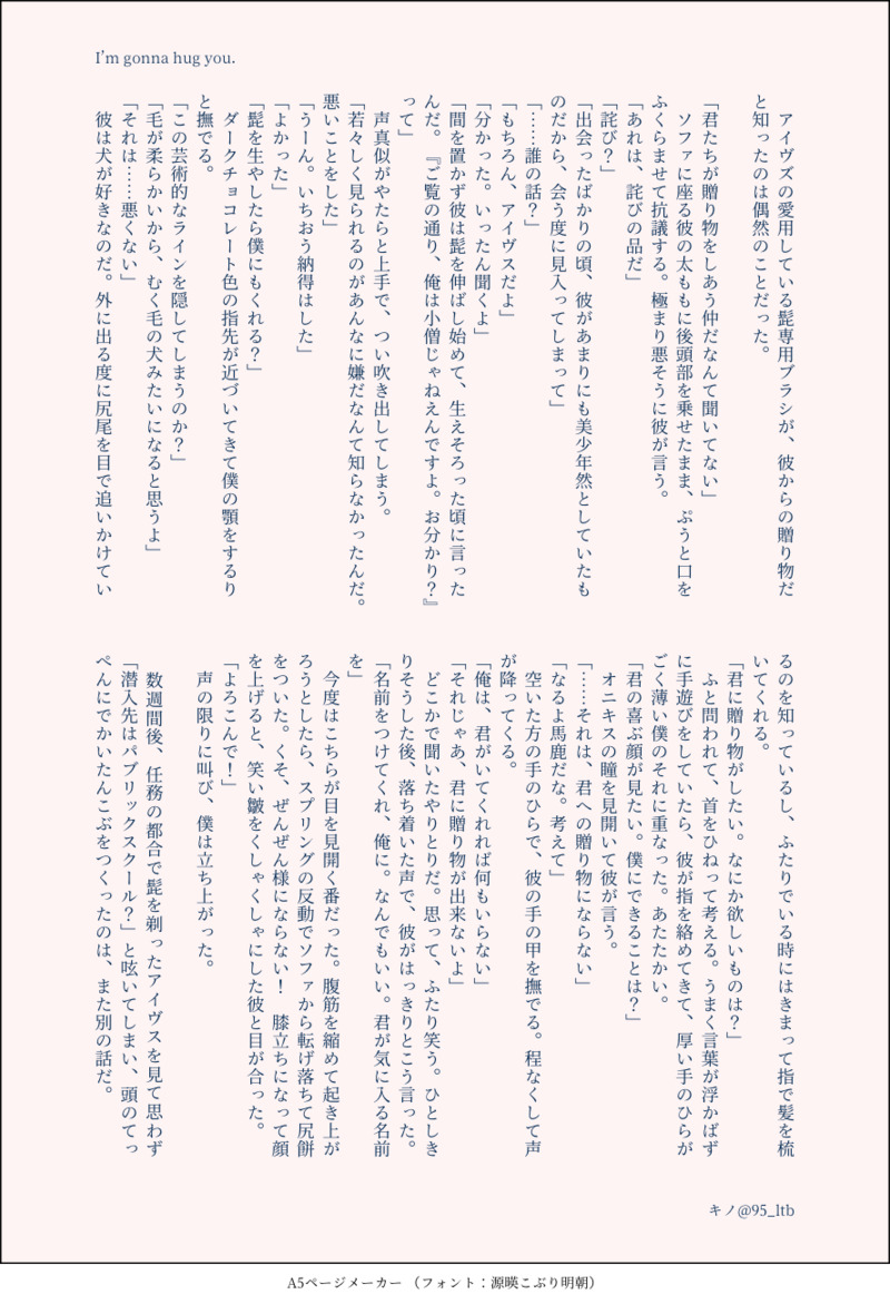 TNT公開1周年と一ヶ月おめでとうございます!#にるたご オンリーwebアンソロに寄稿したものの再掲です。改めて主催さま、よい機会をありがとうございました。当社比ですがちゃんとNPです。アイちゃん成分多めですが……お題にも沿えておらず……申し訳ない……投稿した「気にいる名前をつけてくれ」がオンリーのタイトル候補に残ってたのが嬉しかったので、それをお話の中の台詞として使いたかったのでした。