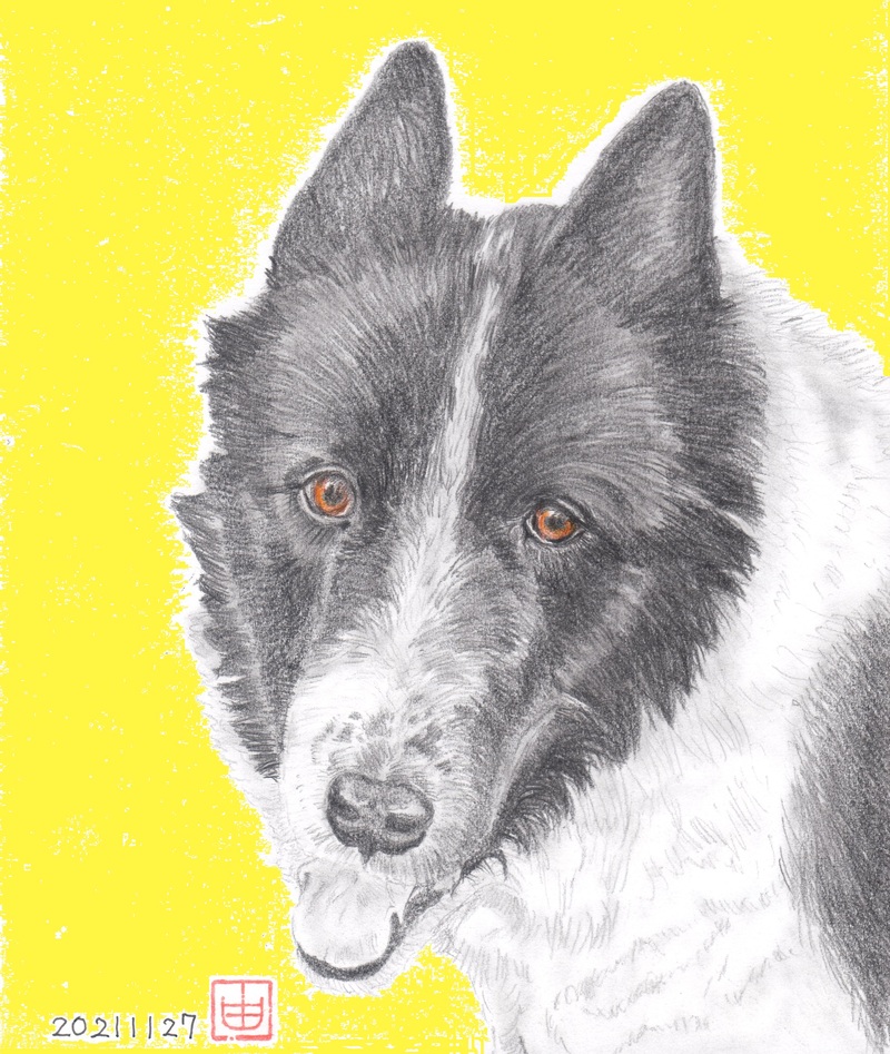 鉛筆画のはずが、瞳の美しさだけはカラーにしたくて色鉛筆。
