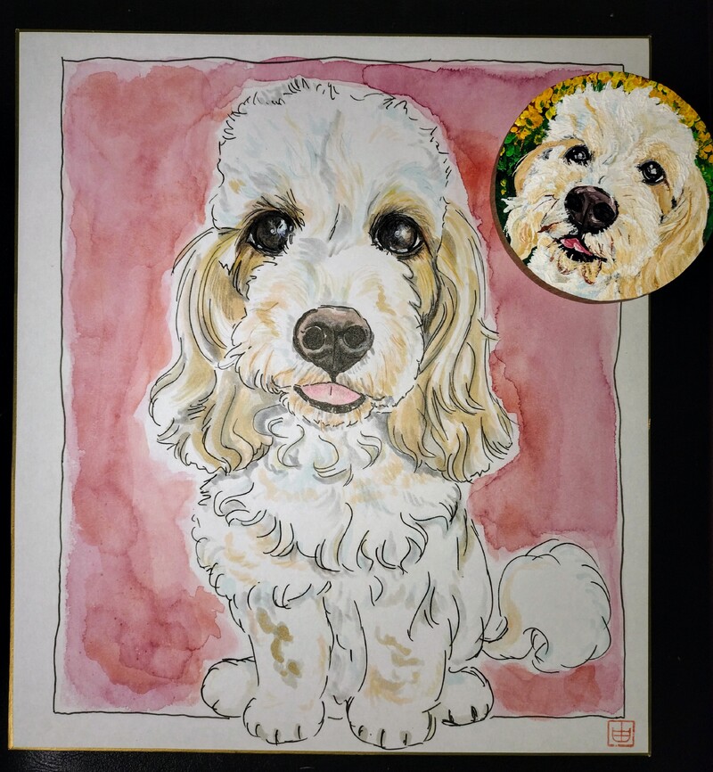 木に描いたのと似顔絵色紙、ドゥードゥルさん。