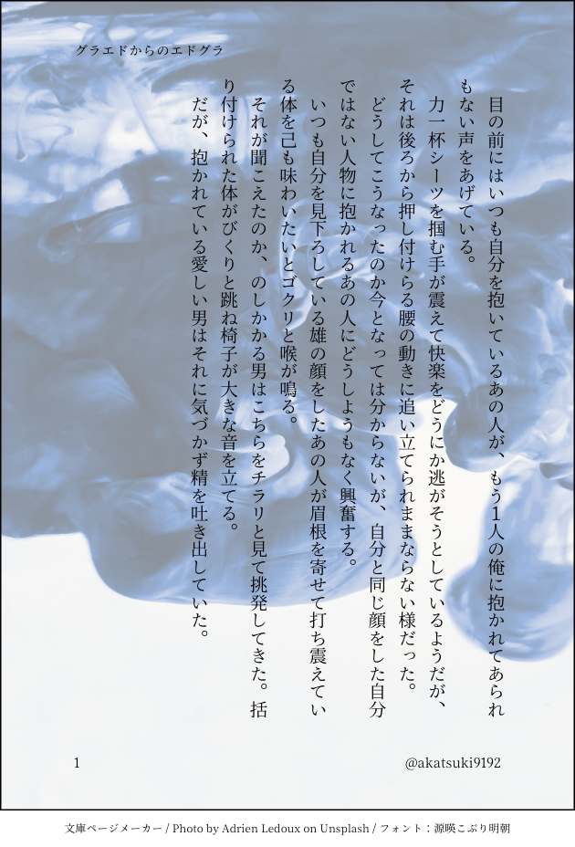 greentea☆quiet followMOURNING2年前くらいに書いたグラエドからのエドグラ少しやってます🤏 Tap to full screen (size:630x928).Repost is prohibited Let's send reactions! freqpopularsnackothersPayment processing Replies from the creator Follow creator you care about!☆quiet follow greenteaDOODLEキャロが亡くなったグース生存ifの倫理観グッバイなグスブラとマヴェブラなのでご注意を。とりあえずざざっと書ける所まで。注意:現実では犯罪となります。また性犯罪行為を肯定、推奨するものではありません。パスワードはマーヴェリックとグース機の機体番号 694 greenteaMENUSPRAKハンルス新刊サンプル 1036 greenteaMENUSPARKマヴェルス新刊サンプル 844 greenteaMENUMP43で頒布のマヴェルスサンプルです 778 greenteaDOODLERWRBの掌編(書き手はヘンアレ好きですが、どちらがという描写はありません) 815 greenteaDOODLEわんちゃんになったハングマンのハンルス小話 1417 recommended works かいこうTRAININGブラザーブラザーブラントくんとクリントが兄弟AU カズ@bu_tan0513DOODLE朝からちゅっちゅ ochimpobeamDOODLE100万回描かれてそうな気がするけど自分は描いてないから描いた#Neiltagonist#ニル主 みー🔄MOURNING勘違いニル主#Neiltagonist みー🔄DOODLEニル主#Neiltagonist こんぶDONE概念マグカップお迎え記念☺️ KHAO_PodDOODLEThe trip みー🔄MOURNINGバレンタインと言い張るニル主#Neiltagonist greenteaDONE学生AUで青い春。鬱展開ではないのでご安心を。 3
