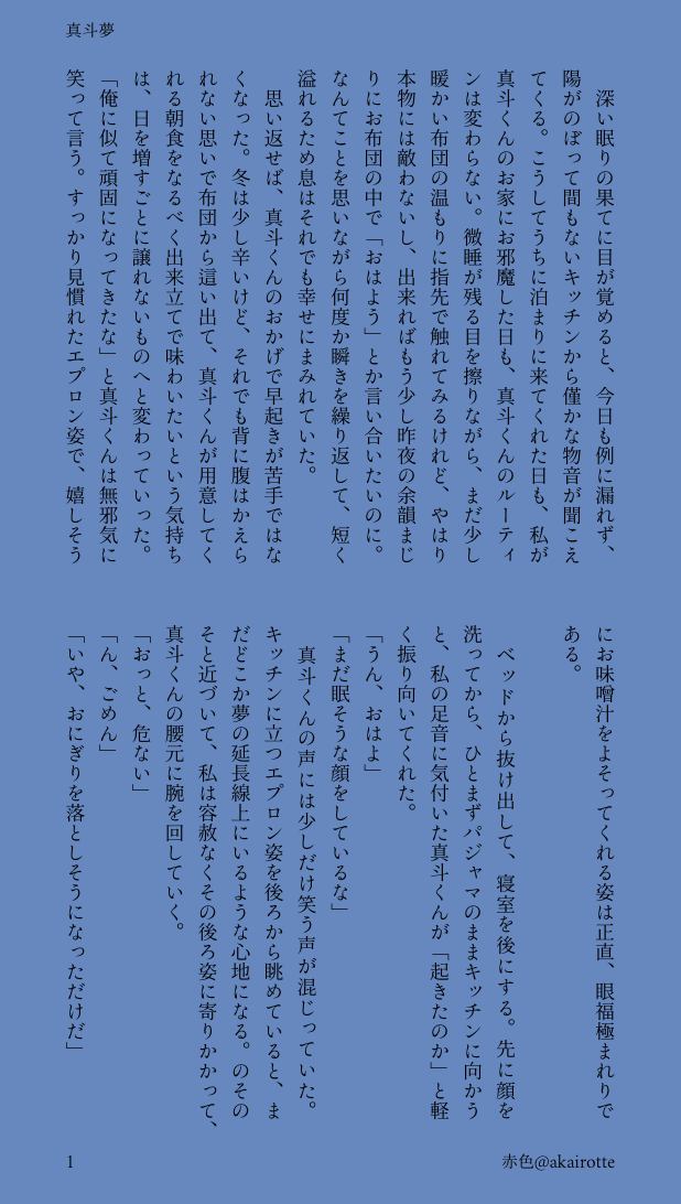 akairotte☆quiet followDONE【真斗夢】リクエストありがとうございます! show all(+3 images) Tap to full screen (size:618x1092).Repost is prohibited Let's send reactions! freqpopularsnackothersPayment processing Replies from the creator Follow creator you care about!☆quiet follow akairotteDONE【ご主人様🌞×メイド夢主】innit※ 以前書いたご主人様🌞×メイド夢主のお話のその後になります。 7 akairotteDONEcrsmプラス🧡夢 / R18 / セフになる話。🧡も夢主も体操観念ガバガバです。 8 akairotteDONE【社会人パロR18/🌞夢】24/7※ 後輩🌞くんシリーズです。pass 🌞の誕生日4桁。 12 akairotteDONE【学パロ/🌞夢】いちばん星※ 🌞と同じ施設出身※ 作曲家を目指す夢主※ 時間軸は特に意識せず書いてるので、アニメやゲームにはない設定が出てくる可能性があります。リクエストありがとうございました! 13 akairotteDONE【綺羅夢】burnリクエストありがとうございます! 6 akairotteDONE【R18蘭丸夢/パロ】バンドマン蘭丸×社会人夢主 10 recommended works mellkDOODLEThe only correct canon 2 🍮🍼DOODLE泣いた 回電話PROGRESS はちの字@nonnojiDONEアユソ誕生日おめでとうございます 2 イカチャンDOODLE深海奏命、化野海と出会う「お、おおきい人がいる…」 ggggg0525DONEイベント開催おめでとうございます!ザワの髪を乾かす💥の話とネップリの番号を載せてます 3 白いごはんDOODLEトンチキ占い師弟。自陣探索者FA 青井フジDOODLEアナログ落描き オクジー君率高め 5 めりぜDOODLE和風パラレル👁️💧-陸 中編前、中、後の三編に分かれます動物への暴行を匂わせる表現ありですのでご注意ください。 22