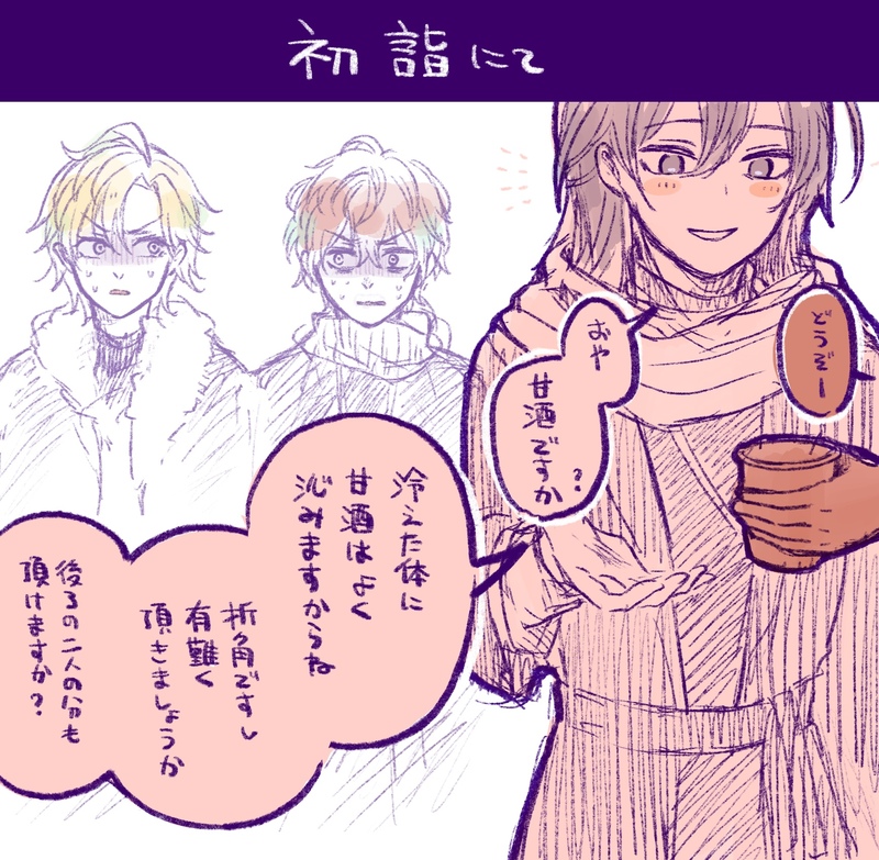 寂雷先生と甘酒 with戦慄するチームメイト