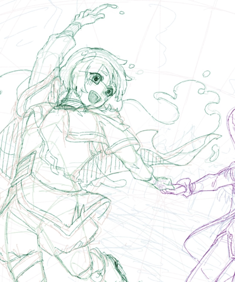 走ってるシーンなので躍動感出るように祈りながら描きます