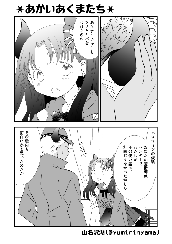 ハロウィン弓凛漫画。弓凛まつりでネットプリントとして配信したものです。いつぞやのゆふぉさんのSDイラストの衣装を見て思いついたお話ですじゃ。