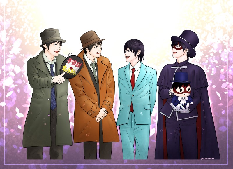 舞台けいどろ千穐楽カテコ ひろのくんasジャック、おおさきくんasアンリ、たかぎさん&ふじたさんas警部
