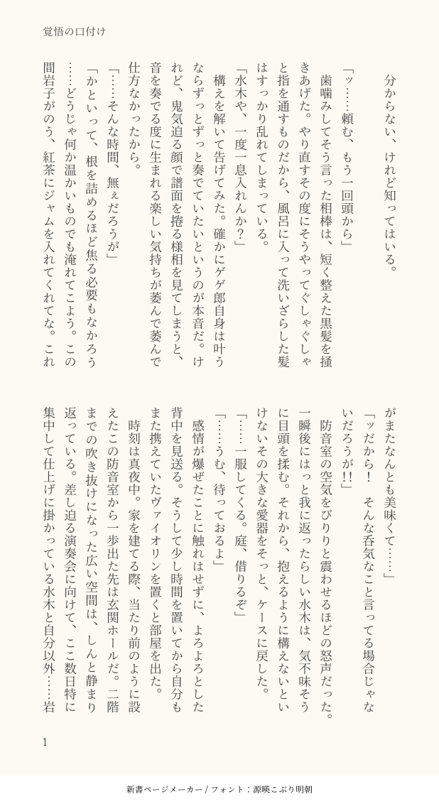 @kusaka_Cage☆quiet followDONE鬼水SS/シネコンパロ設定③・gg郎視点、gg郎がmzkとktrの間に何かあるらしいことを知る話・gg郎は純粋に相棒としてmzk大好き!なだけ。・前半は過去、まだktrがちいちゃい頃。後半は現在、ktrは十歳神童天才ヴァイオリニスト。・全9ページと補遺3ページがあります。 show all(+11 images) Tap to full screen (size:618x1132).Repost is prohibited Let's send reactions! freqpopularsnackothersPayment processing Replies from the creator Follow creator you care about!☆quiet follow @kusaka_CageMOURNING・花若🌸🌱お疲れwkksとkzrの後朝の話。7話後のイメージ。・7話ネタバレありなのでポイピクワンクッションです。・書き殴ったのでひっちゃかめっちゃか、雰囲気でお読みください。・仕事の憂さは仕事で〜 のセリフは『いつかティファニーで朝食を』に出てきた好きなセリフ 5 @kusaka_CageDONE・花若🌸🌱SS・猫をかまうのが上手いkzrの話、後半がぬるいけどR-18・ティアサクカ可愛かったので・パスワード 18↑ y/n 6 @kusaka_CageMOURNING・花若SS・汗舐め腋舐めの話なので、苦手な方読まないでください。・そんなに激しくないけど致してる最中。パスワード 18↑ y/n 3 @kusaka_CageDONE・akkr 🌸🌱花若SS R18・パスワード 18↑? y/n・2人がやまもおちもなくえっtiしてる話、kzrが攻め攻めしい 9 @kusaka_CageMOURNING・akkr花若🌸🌱SS・wkksにピアス痕があったら捏造・幼馴染設定で、二人の過去も色々捏造書き始めた時から、6話以降色々あって色々変わって書き上がらなさそうだったけど、無理矢理まとめた供養うpです 6 @kusaka_CageDONEakkr🌸🌱SSたこやき作る話 5 recommended works uasskku__0222REHABILI KristeenLe25561DOODLE密码是六字母+四数字字母:蓝忘机的姓氏拼音+魏无羡的姓氏拼音数字:蓝忘机的生日加上魏无羡的生日总和 2 mamesibagogoDOODLE内容としてはなんて事は無い落書きなんですが描きたかったものが物の為、ぽいぴく行きになりました。マコトの仮面オフになるので再度警告ですがレインコプレイ済の方のみ見てね 2 NV5cAfUjD0CWd9hDONE巳年にちなんでけがれの大蛇にいけにえにされる双王子血と凌辱なのでワンクッション RIP_348__DOODLE代理殺人未通過❌自陣⭕️パスワード「YES」 R623HSDONE07.1.3 透かし怪文書なしVer towa_drawDONE ナサギナDONE エビマヨDOODLE 2
