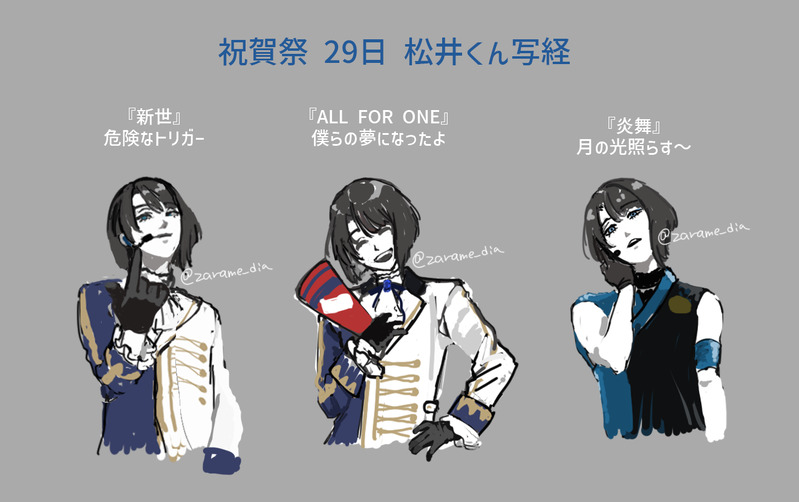 ざらめ☆quiet followDOODLE祝賀祭29日公演 松井くん写経らくがき3つラクガキクオリティなのでぽいぴくにあっぷする Tap to full screen (size:1321x830).Repost is prohibited Let's send reactions! freqpopularsnackothersPayment processing Replies from the creator Follow creator you care about!☆quiet follow ざらめDOODLE祝賀祭29日公演 松井くん写経らくがき3つラクガキクオリティなのでぽいぴくにあっぷする ざらめDOODLE夢絵またよその本丸の刀に熱を上げていたのがバレたときのうちの松井くんの反応(ぴゅあくる大楽が終わったあたりに描いてたらくがき) ざらめDONE夫に描いて貰った刀剣男士たち味があって良すぎる、好き ざらめDOODLEめりくりサンタ服とバニーどっちも着てほしい欲を混ぜたスモークターキーレッグが食べたかった ざらめMEMO音曲祭千葉初日のありがとうMCが好きすぎて会話を書き出した円盤に入るかわからないからメモとして残しておく 2687 ざらめSPOILER玖寿音曲祭ネタバレ北海道公演13夜客降りでの桑名と松井が可愛かった記憶 recommended works ぬまこPASTミュ巴ちゃん#刀剣乱舞 #刀ミュ #巴形薙刀 #模写 ぴげいぬDONEダンスほんとにかわいい ひまももPROGRESSやっと色分けされた🙏 うずらDOODLE きしろDOODLE ぎんちゃむPROGRESS一応 襟つけたけど、手前に鎖を付けてるからもうちょい距離感とか考えないとなー ぎんちゃむPROGRESSまだまだ磨かないとだ〜(( 'ω' 三 'ω' )) myutableDONE手の挙げ方 みんな違ってみんな良い(2枚目 桑名ゴーグル差分)音曲祭本当に楽しかったです大感謝 2 sai_inuskDOODLE今度こそパライソ観に行くからね!