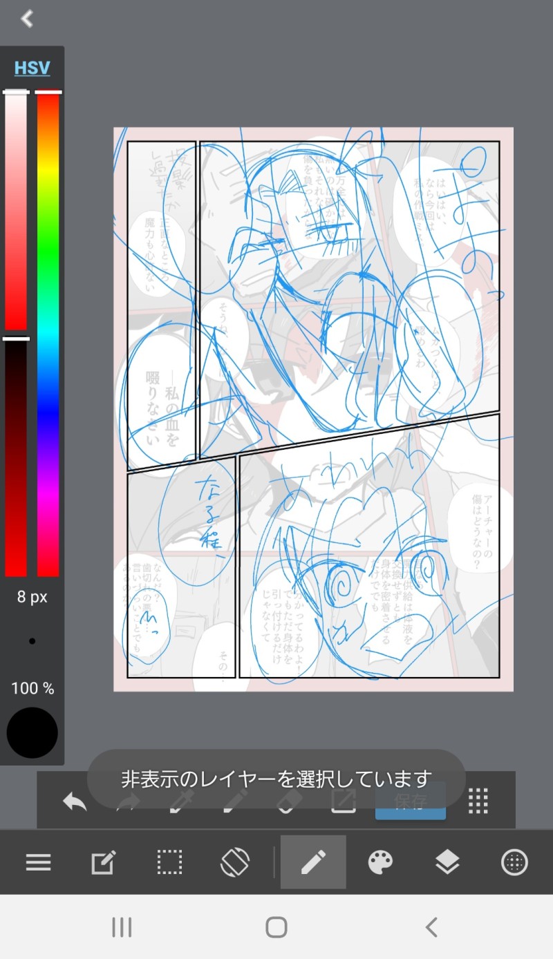 下にうっすら載ってるのはこのマンガの1ページ目です(枠の位置とかコマ被り防止のため)