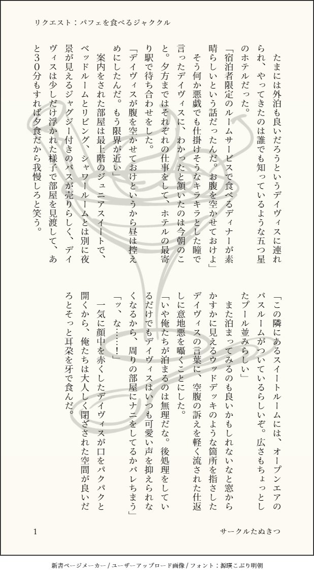 ジャククルの過去ログです。たまに新作もあげています。