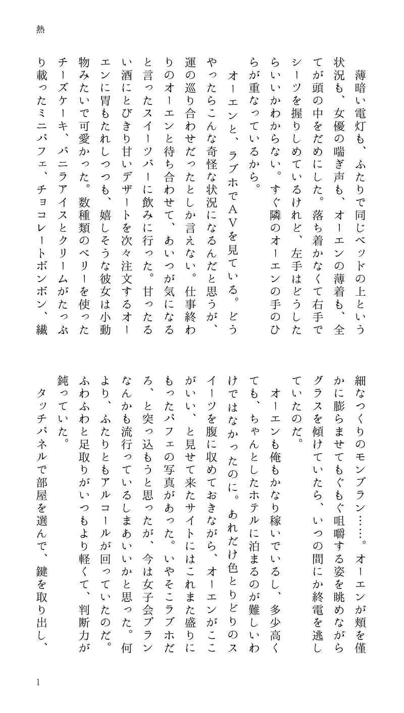 mashiro_mhyk☆quiet followDONEまじょパ2展示②付き合ってないカイン♀とオーエン♀がラブホに行ってAVを見る話です。 show hide show all(+2 images) Tap to full screen (size:1854x3276).Repost is prohibited Let's send reactions! freqpopularsnackothersPayment processing Replies from the creator Follow creator you care about!☆quiet follow mashiro_mhykDONEまじょパ2展示②付き合ってないカイン♀とオーエン♀がラブホに行ってAVを見る話です。 3 mashiro_mhykDONEまじょパ2展示①モブ♀視点の合コンにきたオーエン♀のお話。(モブからの感情は特にありません。) 4 mashiro_mhykDONE『目が覚めれば、知らない朝にいた』カイオエフェス3の展示のSSです。にょたゆり/初夜を迎えたふたりの翌朝の話※カインの一人称を私に変えています 5 mashiro_mhykINFOカイオエフェス3ネップリサンプルです! 3 mashiro_mhykINFOカイオエフェス2ネップリサンプルです! 3