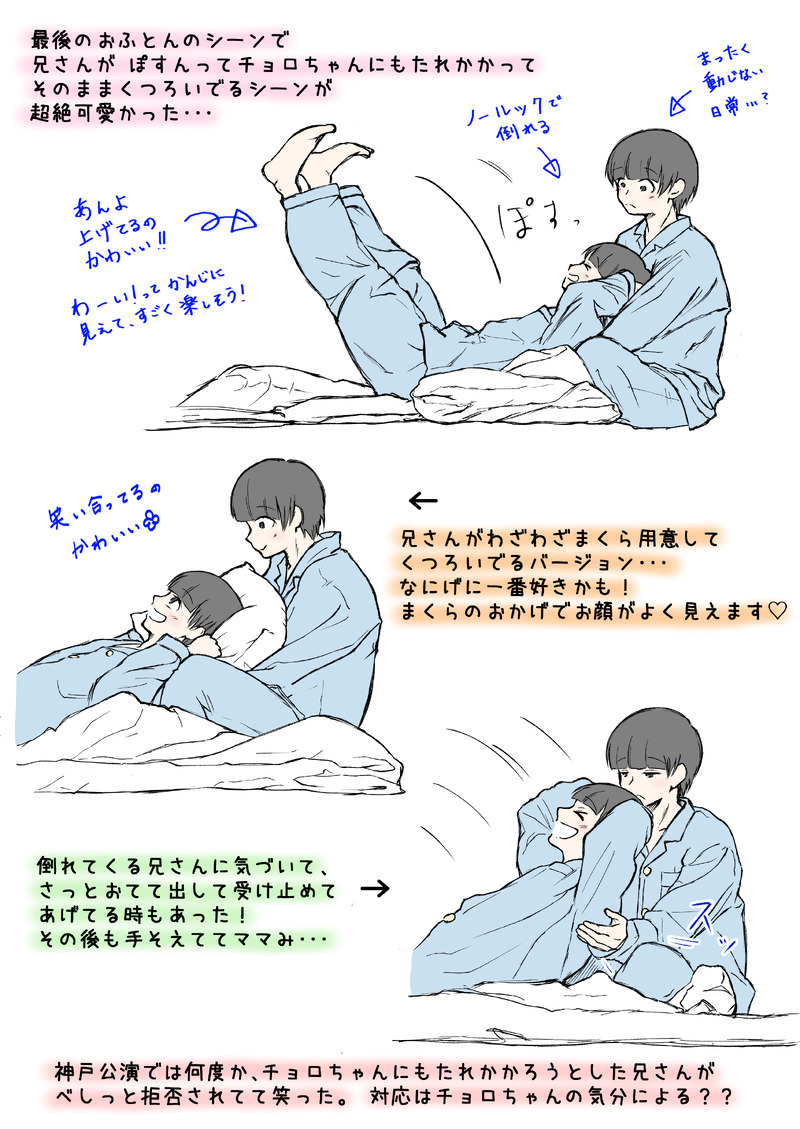 climaxsakura☆quiet followDOODLEおそチョロ的まつすてレポ②最後のおふとんのシーン超絶可愛かった…… Tap to full screen (size:2508x3541).Repost is prohibited Let's send reactions! freqpopularsnackothersPayment processing Replies from the creator Follow creator you care about!☆quiet follow climaxsakuraDOODLEジャスジニ的えふしライブレポその③チョロちゃんの腰に手を回し、ぴったりくっついてカメラに手を振る構ってちゃん兄さん尊い……チョロちゃんの応え方も解釈一致で好きすぎます climaxsakuraDOODLEジャスジニ的えふしライブレポ。チョロちゃんに賢いって思われたいおそ松兄さんが可愛い。 climaxsakuraDOODLEえふしライブの速度。(夜の部アンコール中)チョロちゃんの腰を攫ってカメラにアピールする兄さんの構図が素晴らしく「俺のチョロ松」。 climaxsakuraDOODLEジャスジニ的F6ライブレポ。兄さんのチョロちゃんの扱いが丁寧で最高..... climaxsakuraDOODLE円盤に収録されてて嬉しかったちん呼吸のシーンまとめ climaxsakuraDOODLE松ステレポ。強盗のとこのわちゃわちゃ可愛かった…… 長男、自分が前に押し出されないように抑えてる可能性もあるけど、いざという時の長男に夢見てるので、庇ってる説を推していきます