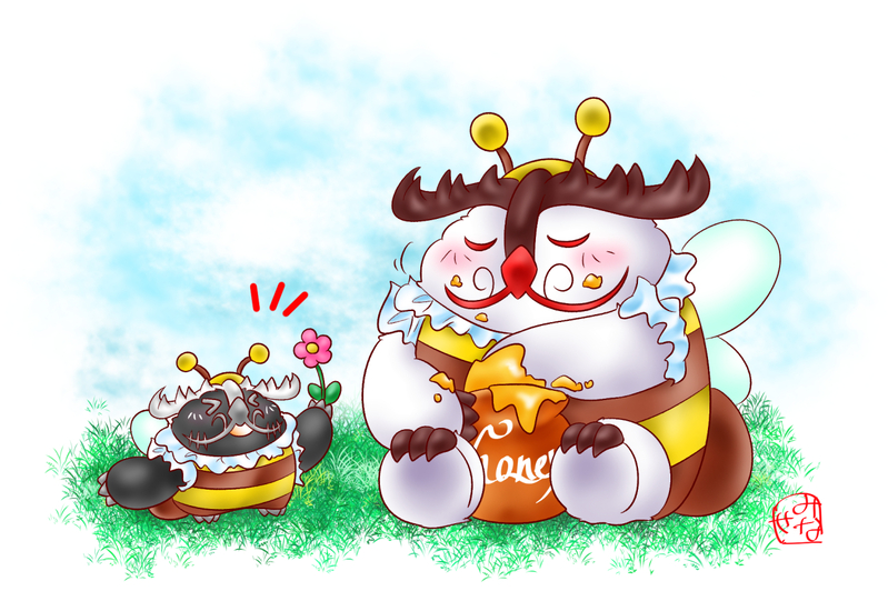 前に後輩しゃんに見せてもらったぬい用のハチ着ぐるみが可愛かったのでのすちゃんにも着せたかったやつ(2枚目は元ネタ写真です)(めぐにゃん…)