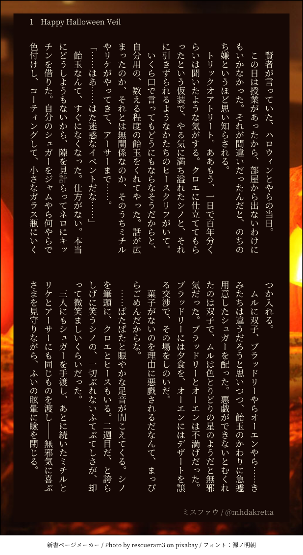 れた☆quiet followDONE【ミスファウ】『Happy Halloween Veil』最高のハロウィンをふたりで。 #ミスファウ misfau show all(+3 images) Tap to full screen (size:618x1132).Repost is prohibited Let's send reactions! freqpopularsnackothersPayment processing Replies from the creator Follow creator you care about!☆quiet follow れたDONEミスファウSSのハイライトまとめです💀🪞💜💙✨◆素敵なメーカー:装丁カフェ 様◆一枚目Pixivフリー素材をお借りしております。ありがとうございます! 15 れたDONE【ミスファウ】『ぬくもり』◆サイト:https://plus.fm-p.jp/u/aconiuzu/book/page?id=4&bid=25 2 れたDONE【ミスファウ】『のろけばなし』要するに愛しい恋人の話。そんなミスファウ、ファさんSSです🔖◆サイトおまけあります💓:https://plus.fm-p.jp/u/aconiuzu/book/page?id=3&bid=25 2 れたDONE【ミスファウ:June bride】『愛しの戯れ』結婚してるミスファウとハロウィン仮装衣装のSS🎃💕サイト:https://plus.fm-p.jp/u/aconiuzu/book/page?id=27&bid=20 4 れたDONEミスファウSSまとめです。 29 れたDONE【ミスファウ/ネモフィラは咲く】おめでとうAnniversary 3 related works きいろDOODLEしばらくこのままで。 れたDONE【ミスファウ】『付き合っていられない』……といいつつ。 2 れたINFO50文字ミスファウ10話まとめ 10 れたDONE六月花嫁(June bride)ミスファウリクエスト頂いた『人間と魔法使いの双子を育てる話』の前編です。 4 きいろCAN’T MAKEミスファウちゃん... れたDONE【ミスファウ:June bride】ミススポットからSSです。ミスファウ結婚してます『死の湖の渡し守』 4 akauni8DONEこの前の妖異譚の続き的なやつです!だいぶ懐いた子天狗ファに久しぶりにあったら呼び捨てにされたことに、ちょっとムスっとしてる竜ミです!(服は適当) 2 れたDONE六月花嫁ミスファウ話。かけがえない居場所 2 れたSPOILER【ミスファウ】ミス印象ネタ含みます。ネタバレご注意。『ひとつになる影』 2 recommended works きいろCAN’T MAKEミスファウちゃん... れたDONE【ミスファウ:June bride】ミススポットからSSです。ミスファウ結婚してます『死の湖の渡し守』 4 れたDOODLEミスファウ『少しの願い』 2 れたDONEカボチャのキッシュ/ミスファウ賢者様とセルフなカボチャとミスファウ 5 れたDONE【現パロ:ミスファウ】『二人おなじ帰り路』現代パロ、ミス×病弱ファさん。つきあってます。ハッピーハロウィン🎃 4 れたDONE【ミスファウ】『Happy Halloween Veil』最高のハロウィンをふたりで。 4 れたDONE【ミスファウ:June bride】『寝つけない夜に』 3 れたDONE【ミスファウ】よきおちり 3 れたDONE【ミスファウ:June bride】昔と今。 2