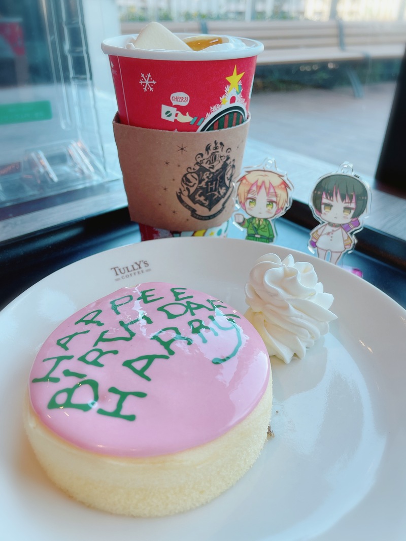 タリー図のポタコラボケーキ、普通にうまうまだった(*言ω言)❤️(甘_甘w)✨ ドリンクは甘さ調節してもらえるから助かった〜!