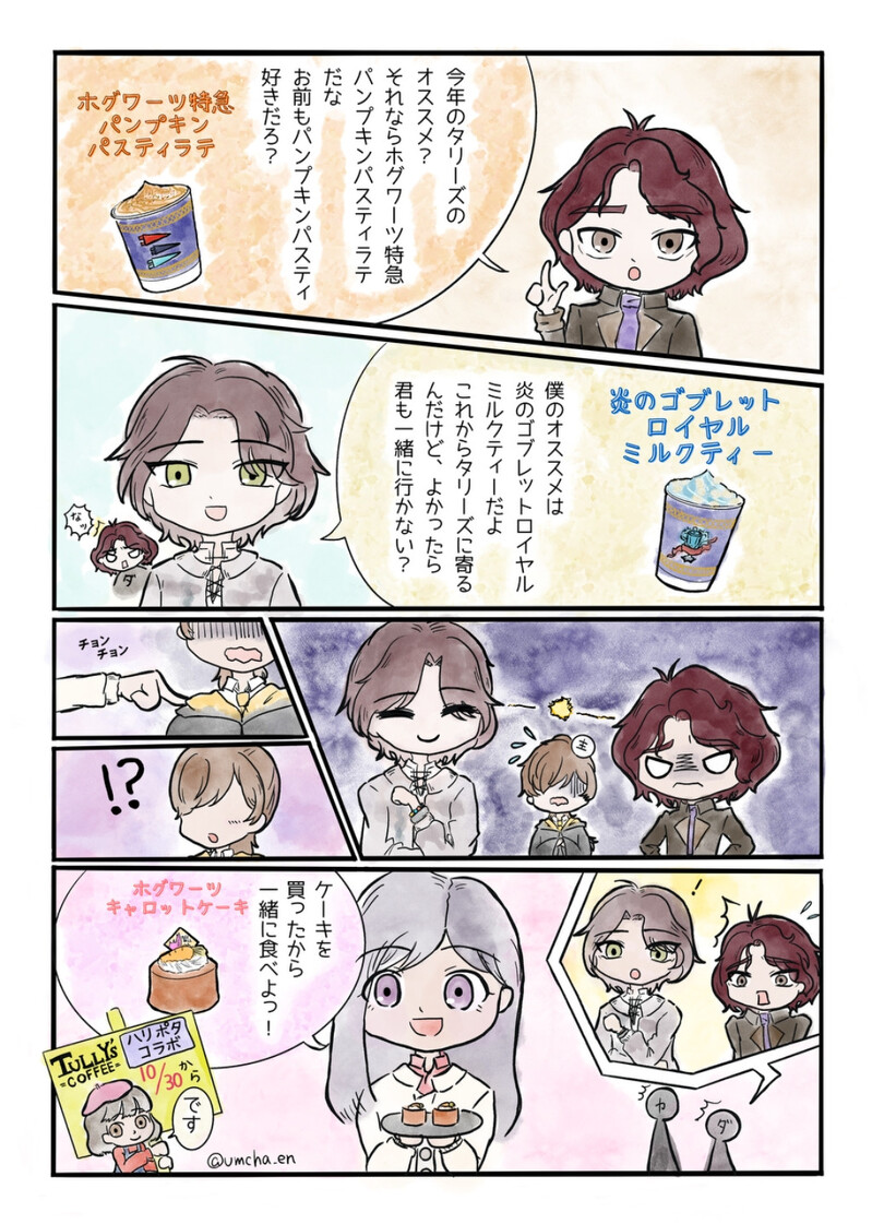 おちゃもち☆quiet followDONEまほかく。タリーズのハリポタコラボが、今年も最高だった……☕✨カリオペ→主人公←ダニエル表現あり。※🦡寮主人公(♀)姿あり。目無し。 #HPMA #二次創作 secondaryCreation Tap to full screen (size:1024x1436).Repost is prohibited Let's send reactions! freqpopularsnackothersPayment processing Replies from the creator Follow creator you care about!☆quiet follow おちゃもちDONE今更だけど、🇺🇸のクリスピークリームドーナツのハリポタコラボのドーナツがめちゃくちゃ可愛いっ!日本でもコラボしてほしい😭アビゲイルだけのつもりが気づけば全寮描いていた。アストリッドとウェンシーは初描き。 8 おちゃもちDOODLE本土のイベントでホムラ役の方がつけていたリボン(たすき?)をグーグル先生に翻訳してもらったらあまりにも語呂か良すぎて友達とずっとその話をしてる。ピュアロマンティックマーメイド🐟️✨ おちゃもちDONEふぁんしー🍄🟫≒深海の🪼ぬいGETした時のやりとり、ホムラとのやりとりが印象的で勢いで描いてた…1日が終わる……遅筆………さかにゃん😽🐾 おちゃもちDONEお祝い絵は大遅刻だけど、マヒルお誕生日おめでとう🎂✨(誕生日当日は10cm自作ぬいを作ってあげたので許されたい……)Xでの公式企画参加用🙂 おちゃもちDONEアビちゃんとドーナッツ🍩アメリカのクリスピークリームドーナツのハリポタコラボが可愛すぎた…日本でもやってほしい🥺💕 おちゃもちDONEがおにゃんに励ましてほしい🍎 2 related works おちゃもちMOURNINGカリ主♀『アクアリウムを泳ぐ』(1/2)カリオペとダンスをする話。ネームレス。前半主人公視点。後半カリオペ視点。⚠カリオペ視点は不穏注意。過去作。X投稿2024.9.2 8 おちゃもちDONE9月1日はバックトゥホグワーツの日!アビちゃんとホグワーツに帰りたーい。推しの照れ顔好きだけど、背景も相まってバレンタイン感が…※X投稿は2枚目 2 おちゃもちDONE『カリオペにスナ◯デル◯ームのカーディガンを着てもらった』まほかく。カリ主♀。主人公♀の姿あり(目なし)。ギャグです。かっこいいカリオペはいない。オンイベ【強く念じよ5】の展示用漫画。 Lu_ChingPROGRESSHPMA おちゃもちPROGRESSあのカーディガンを着たカリオペ兄さんが見たいー🥺💛この後の展開はギャグになる(オンイベ展示用1P漫画の一コマ)。 おちゃもちDONE『最幸の贈り物』支部であげる(予定)のダニ主♀小説『最幸の贈り物』のワンシーンを漫画にしました。まほかく。ダニ主♀。主人公♀姿あり(目なし)。オンイベ【強く念じよ5】の展示用漫画。 2 おちゃもちDOODLEまほかく。ダニ主♀。主人公姿あり。ダニ→(←)主。マダムパディフットの店でマッチングサービスが開始し(←違う)、Xで相互さんとお話してて描きたくなった突発漫画。ギャグです。 Lu_ChingPROGRESS おちゃもちMOURNINGカリ主♀『エスケープ』カリオペと三本の箒でデートをする話。※不穏注意過去作。X投稿:2024.7.4 5 recommended works ちきんPROGRESSぱーさん 髪塗った もうPCが耐えられないほどデータが重い…まだ半分も終わってないのに… ノウァDOODLEサイクス(王国心)とおまけギャグ漫画(※KH3ネタ)サイクスがもし素直になってたら…の話です笑3鑑賞して色々思いついたのでやる気が出次第ギャグ系描きます(たぶん) 2 LunacielDOODLE意味わかんない時にお使いください( DL は Twitter から) y_satoriDONEサンソン先生 y_satoriDOODLEバビロニアアニメ1話良かったねロマニ sarusa1212PASTゲームログ貼るアカウントに放流してたガチャ祈祷とか落書きとか。2019年のもの。 7 ruppi1122hanhanDOODLE仲良しディアベルはんとキバオウさん💙🌰 ユウレイMAIKING あかぎ(利便事屋のすがた)MAIKING一度は描いてみたかった爆丸全シリーズ(爆丸BB、爆TECH、爆丸BP)のコラボ絵の線画で某アニメの主題歌CDジャケをパロってみました。「さあみんな一緒にー「ば、く、が、ん大好きーっ♪」」ちなみに私は爆丸BPから爆丸の世界に飛び込みました。